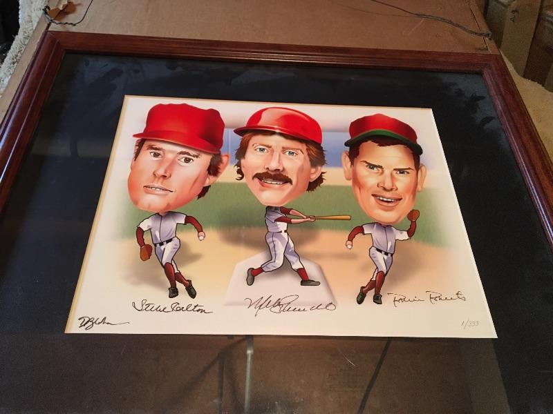 Vintage Lithograph Hand Signed by Mike Schmidt, Robin Roberts and Steve Carlton. LOT 1