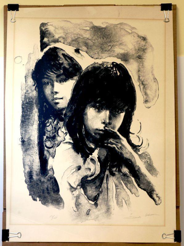 Vintage lithograph signed and numbered by artist, not framed, large size - 19" x 27.5" - as seen on pictures.