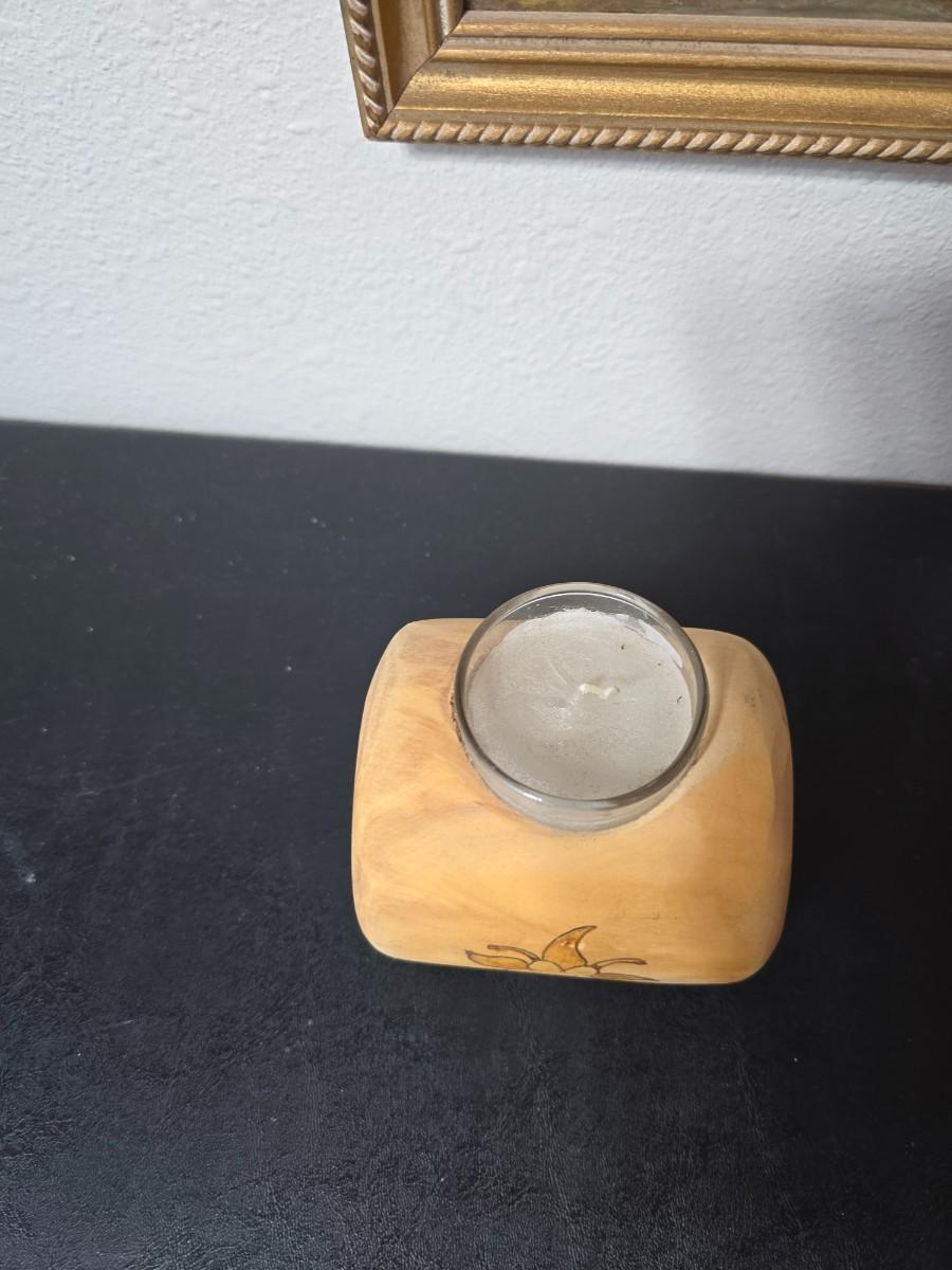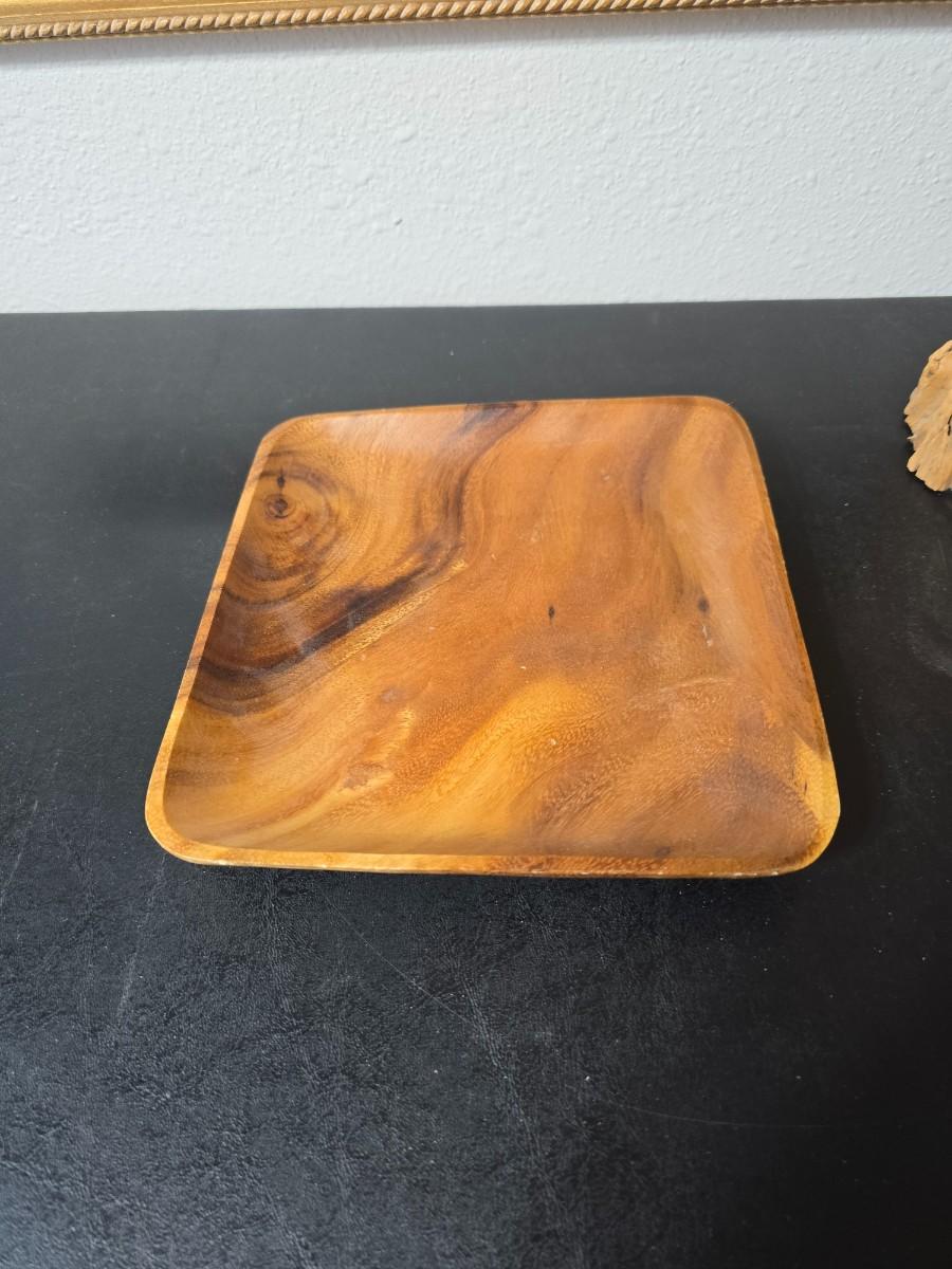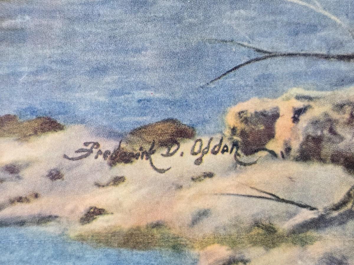 vintage lithograph print by the artist Frederick D. Ogden (1892-1948). - Wooden candle holder & Colorado Juniper hand carved jewelry box and a wooden tray