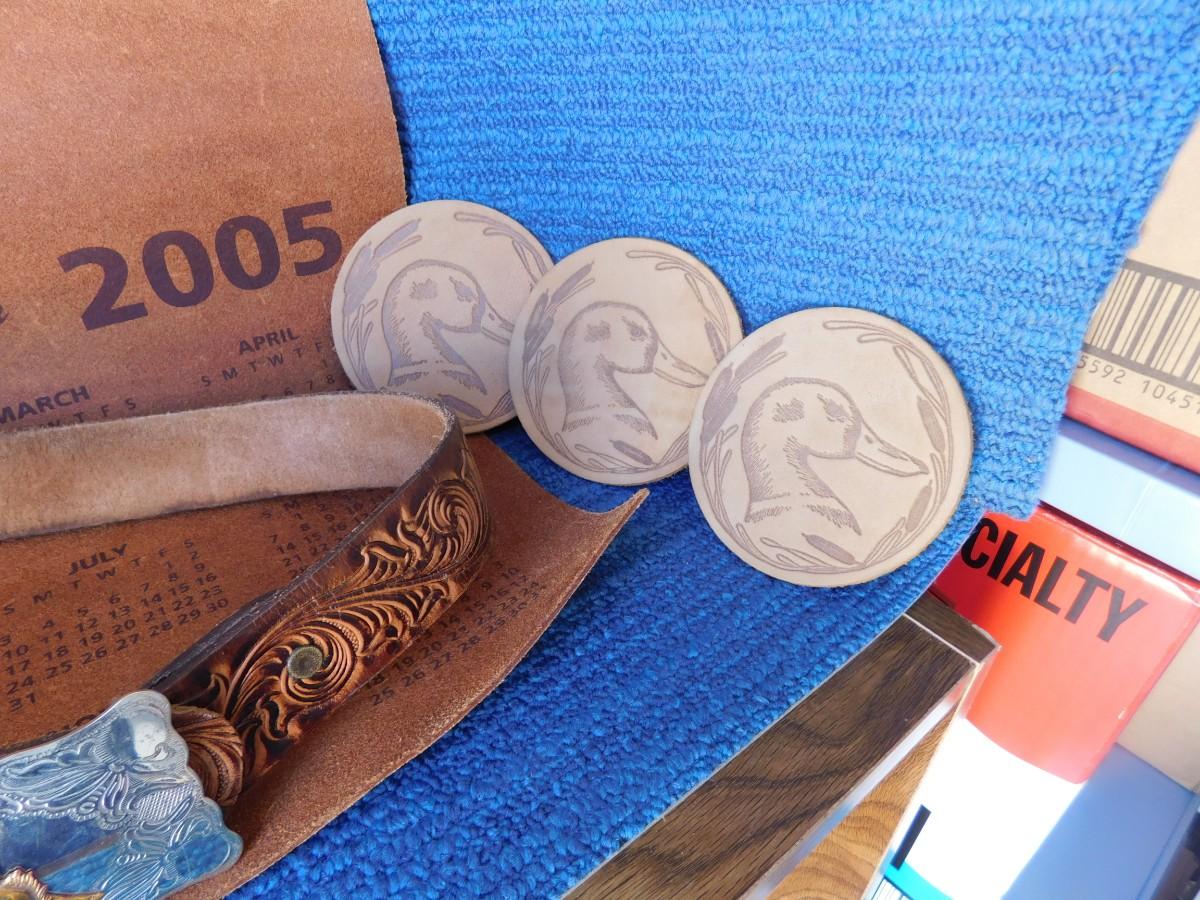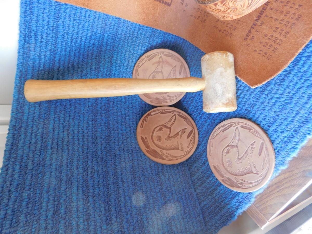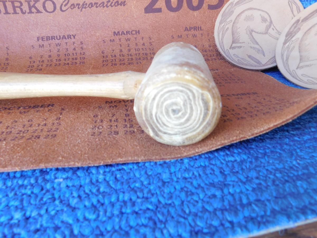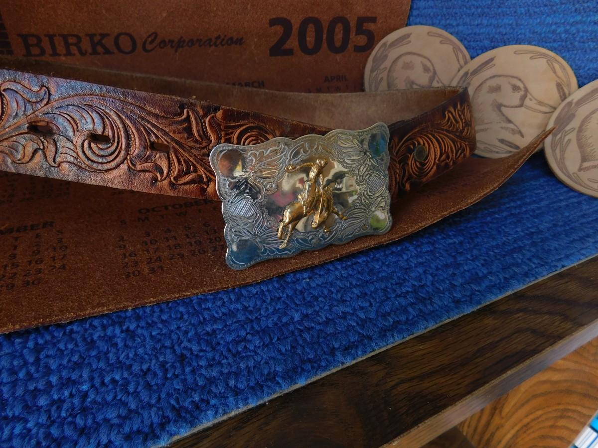 VINTAGE LITTLE BUCKAROO BELT AND BUCKLE, LEATHER HAMMER AND MORE LEATHER ITEMS