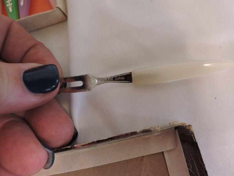 Little Fork made in Japan. Box has damage. **Please read Terms and Conditions before placing a bid. Pick up is Saturday, November 30 from 9am to 3pm in Bridgeton, NJ. All sales are final. All sales are as is, where is. Please review all photos. Any props included in photos are not included in listing. All measurements are approximate.