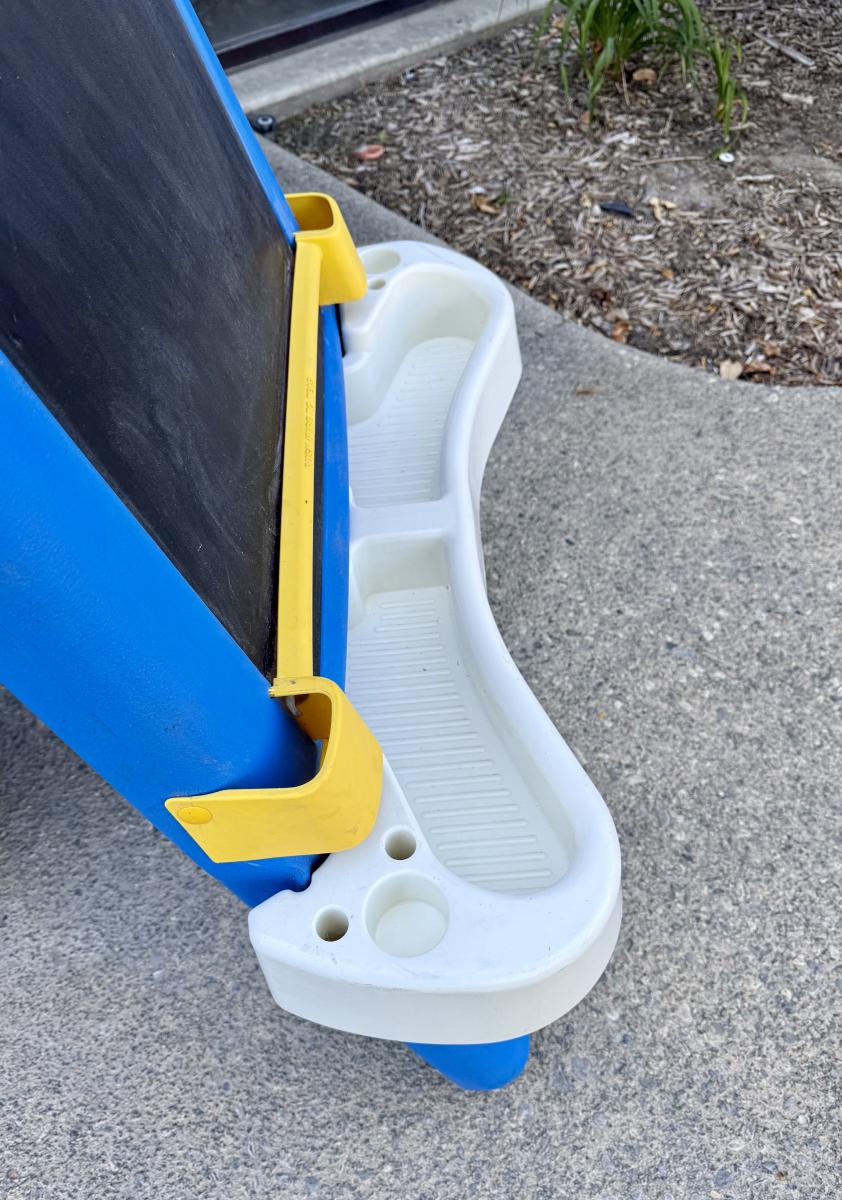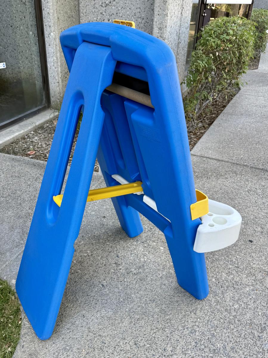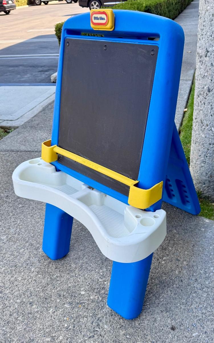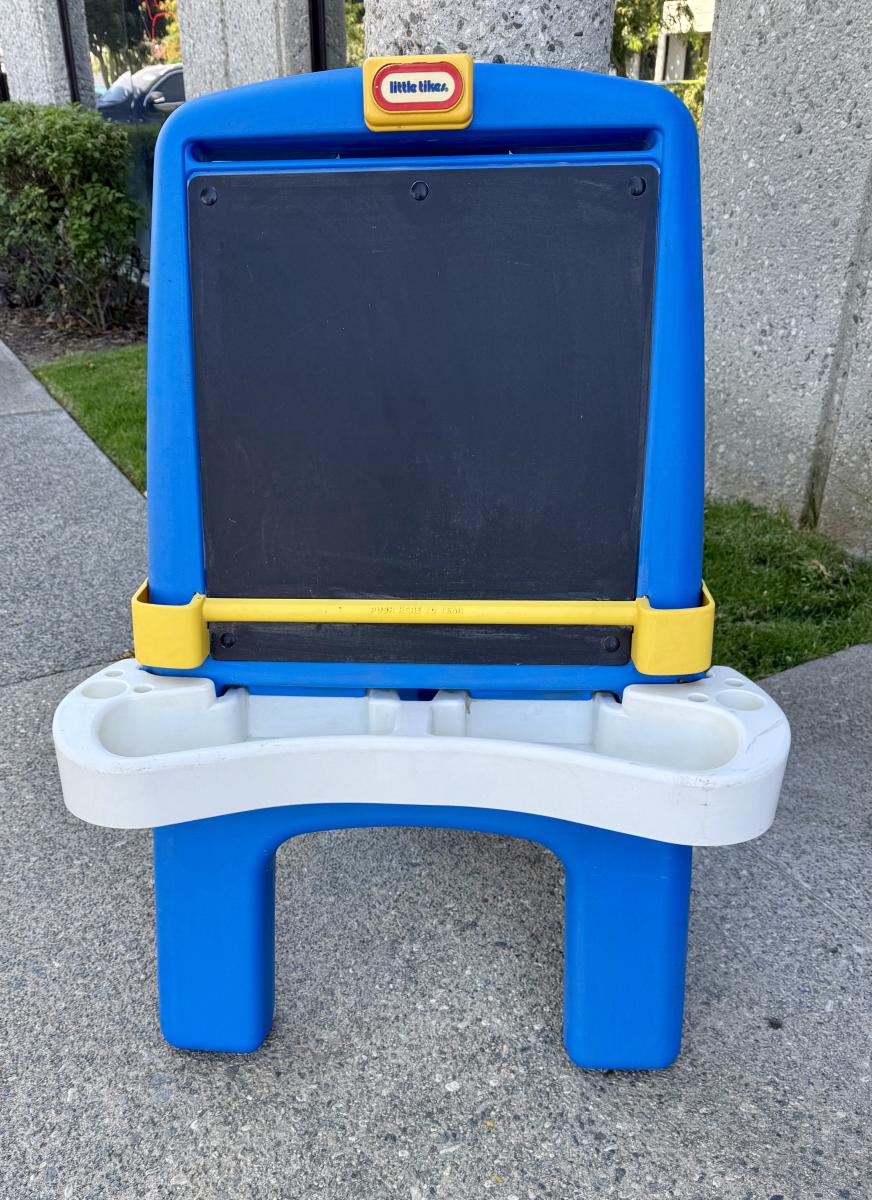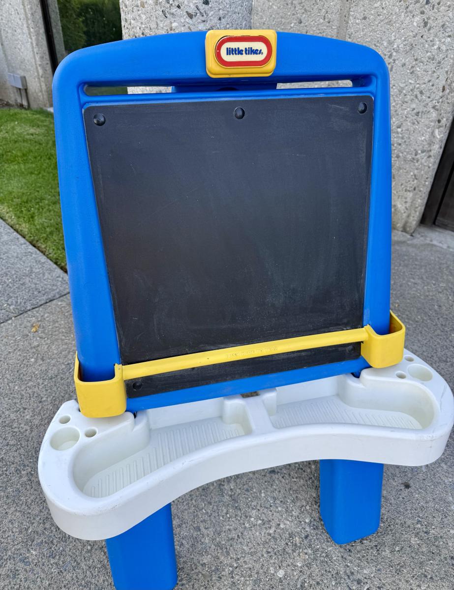 Vintage Little Tikes Child Size Super Storage Easel: Allows children to draw with chalk, or paint using the top clip to hold paper in place (roll of paper is held on the back side). Very good, near=new condition.