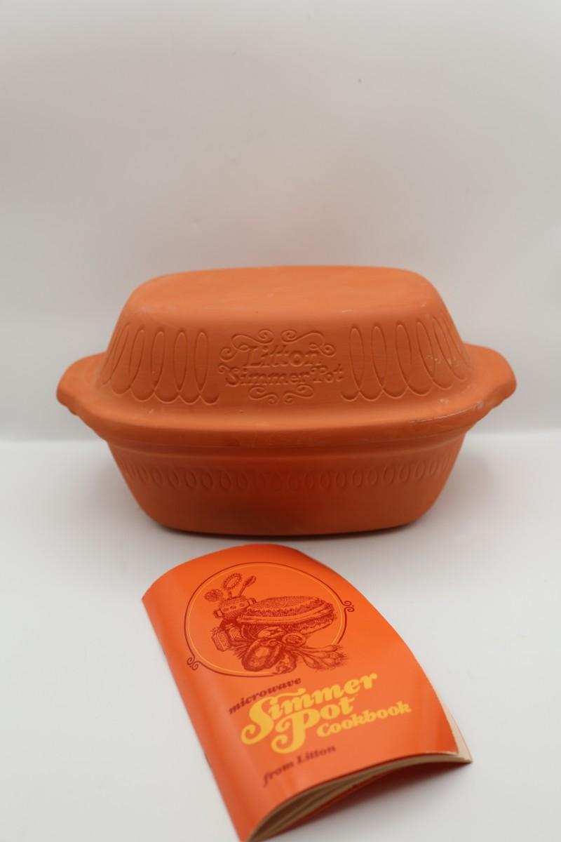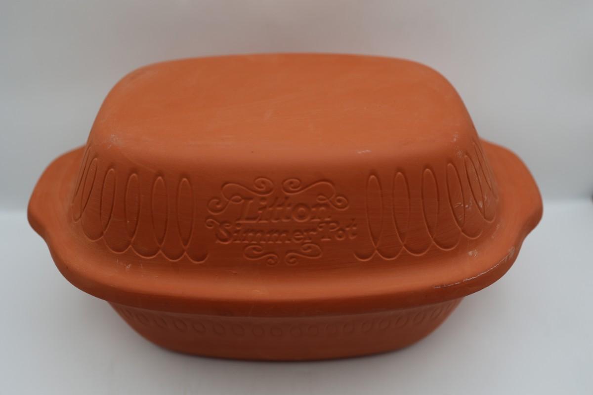 Litton Simmer Pot - vintage terracotta clay cooker or Dutch oven, often used for slow cooking and baking.