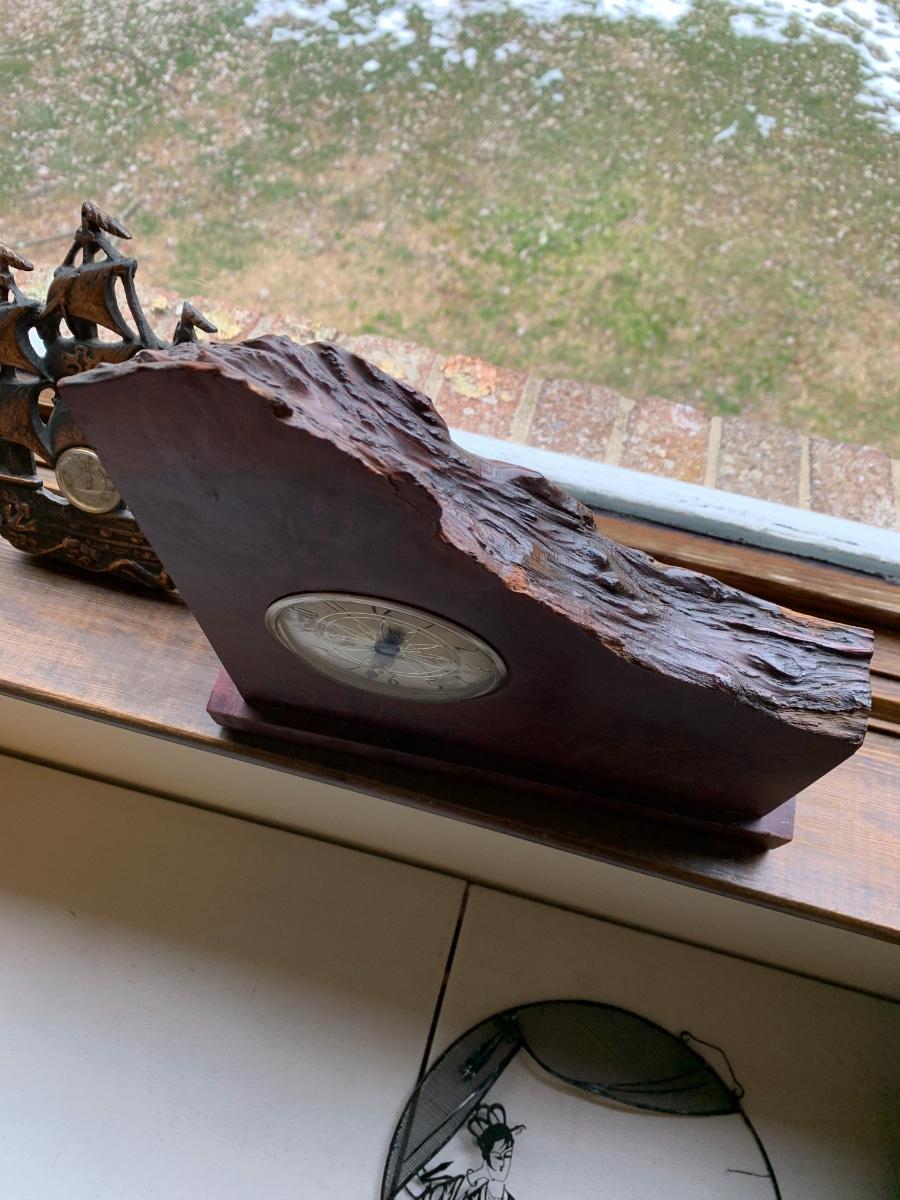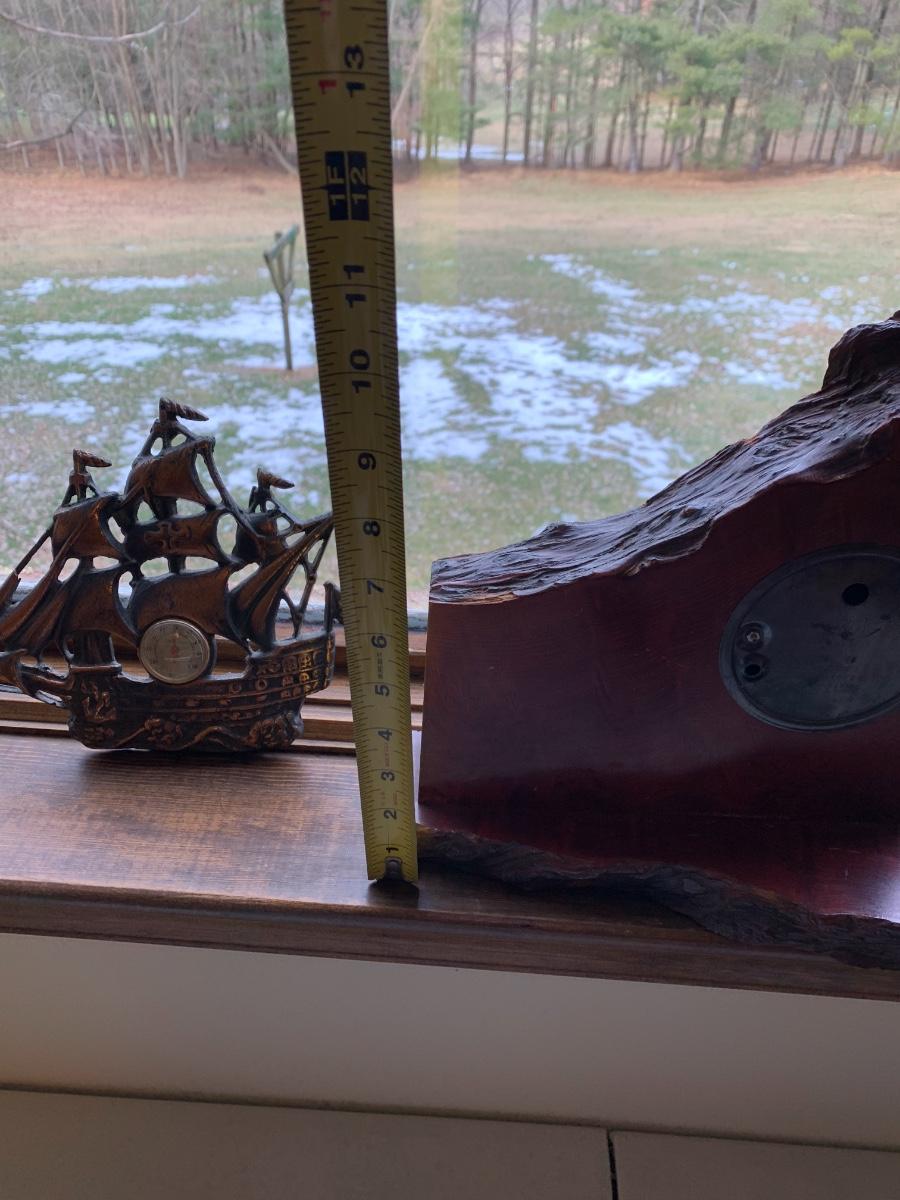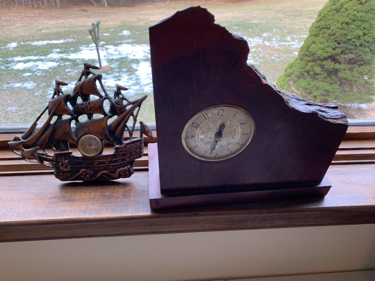 Vintage Live Edge Clock & Metal Ship Thermometer