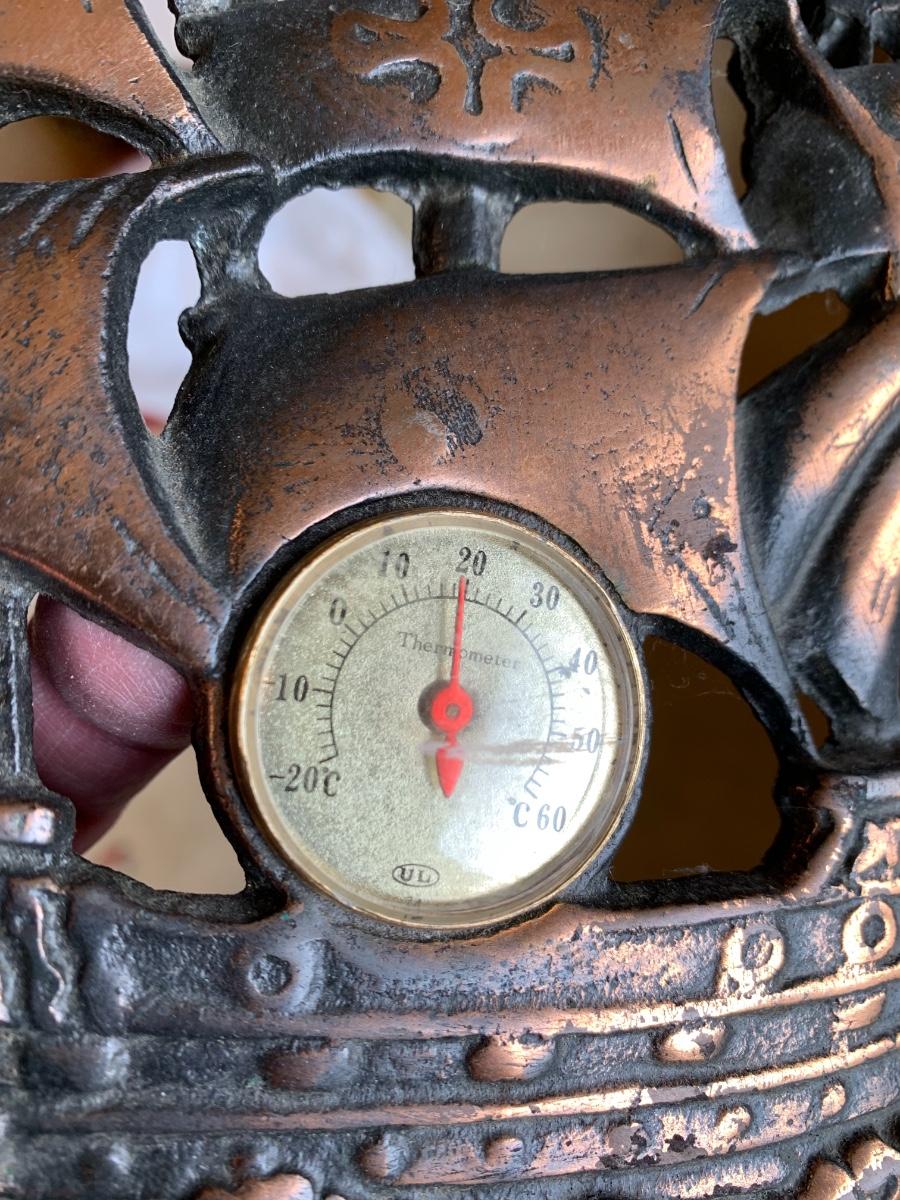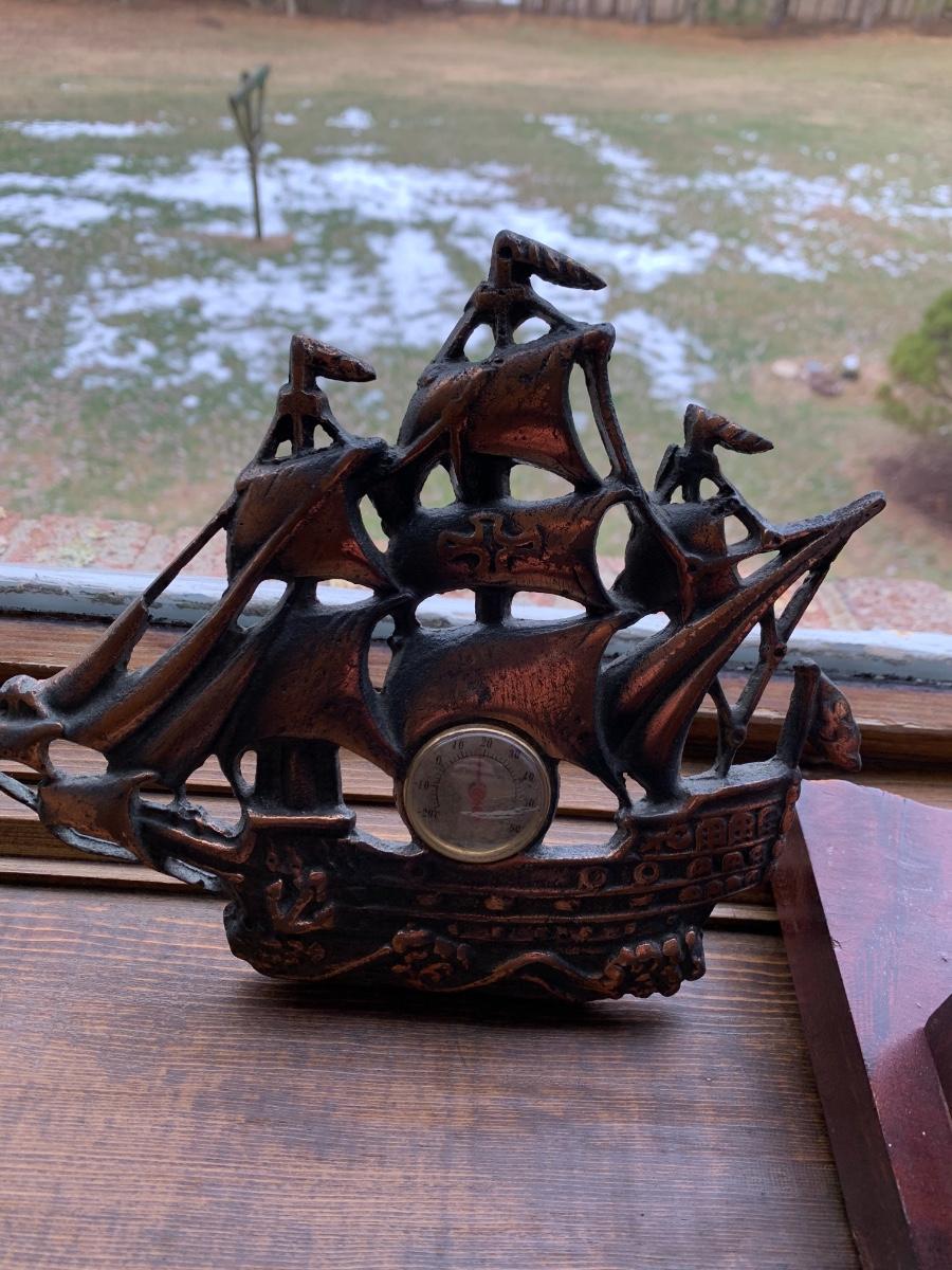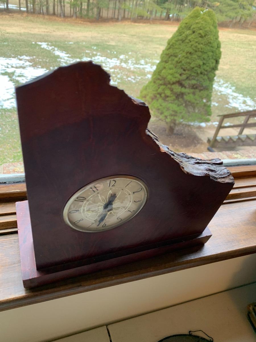 Vintage Live Edge Clock & Metal Ship Thermometer