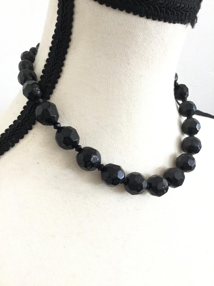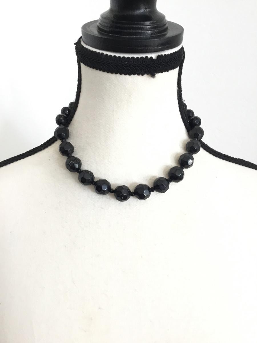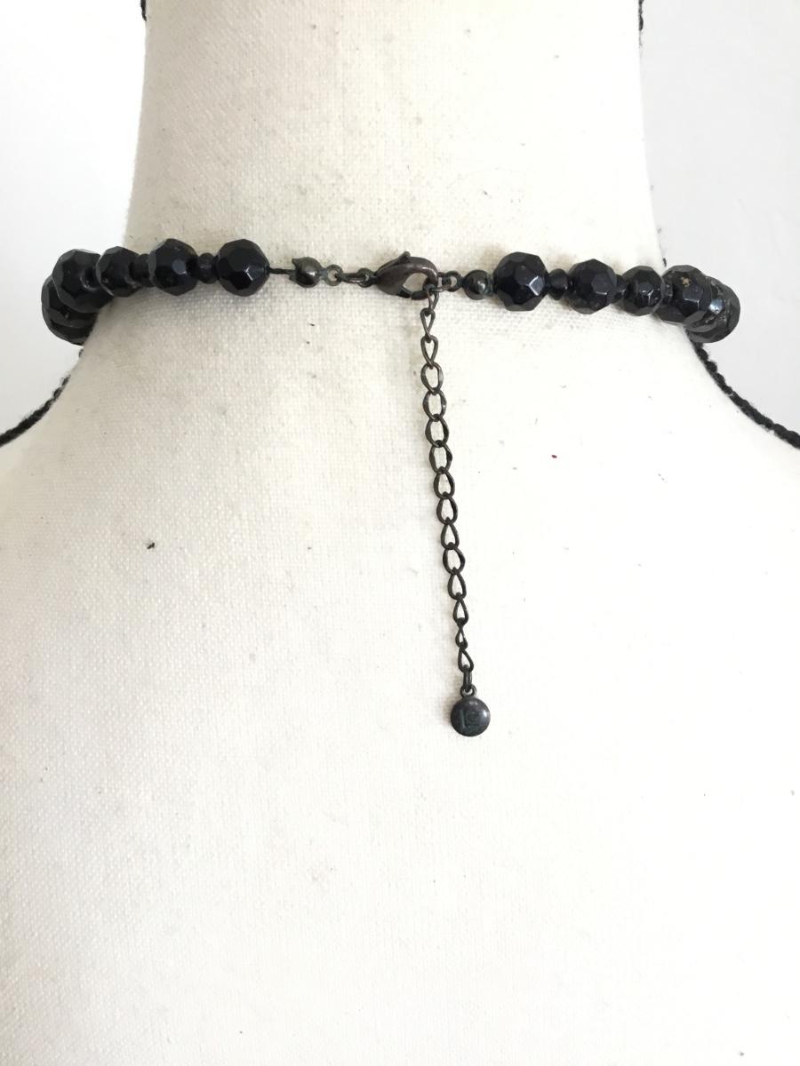 Vintage, Liz, Claiborne, faceted, black glass, bead, choker collar necklace
