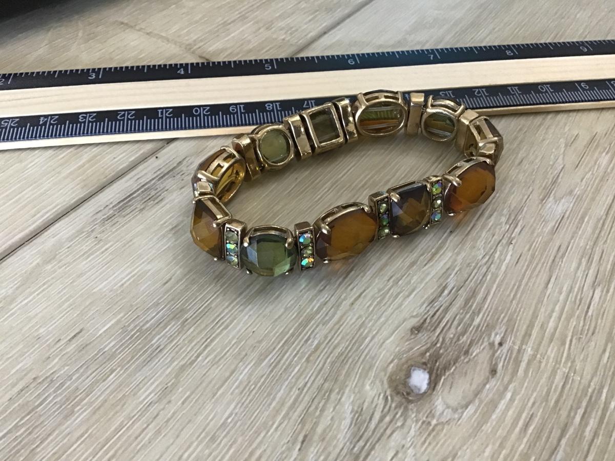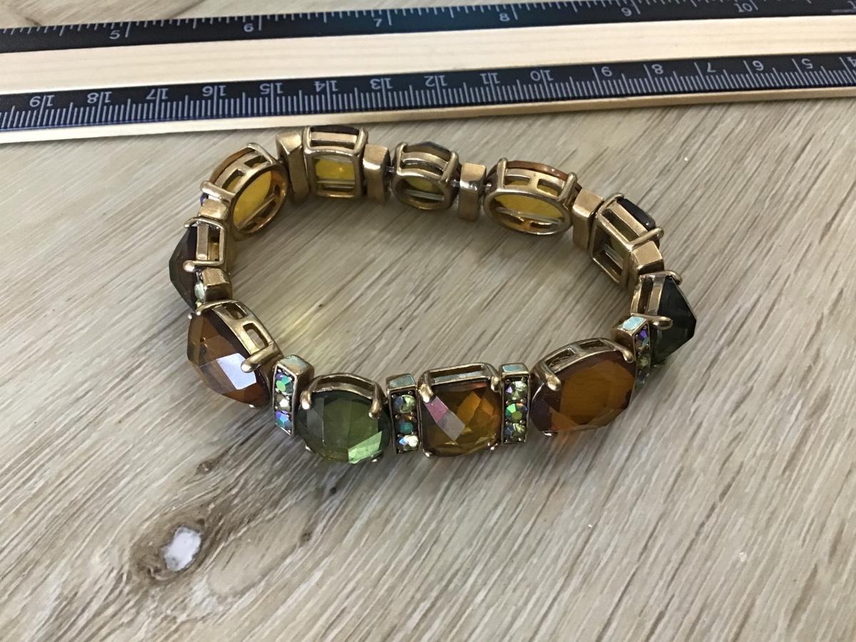 Vintage Liz Claiborne LC Gold Tone Multicolor Stone Stretch Bracelet
