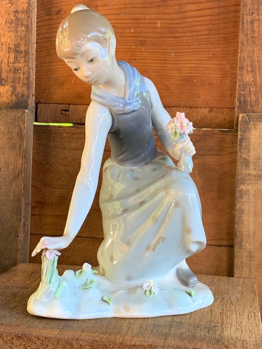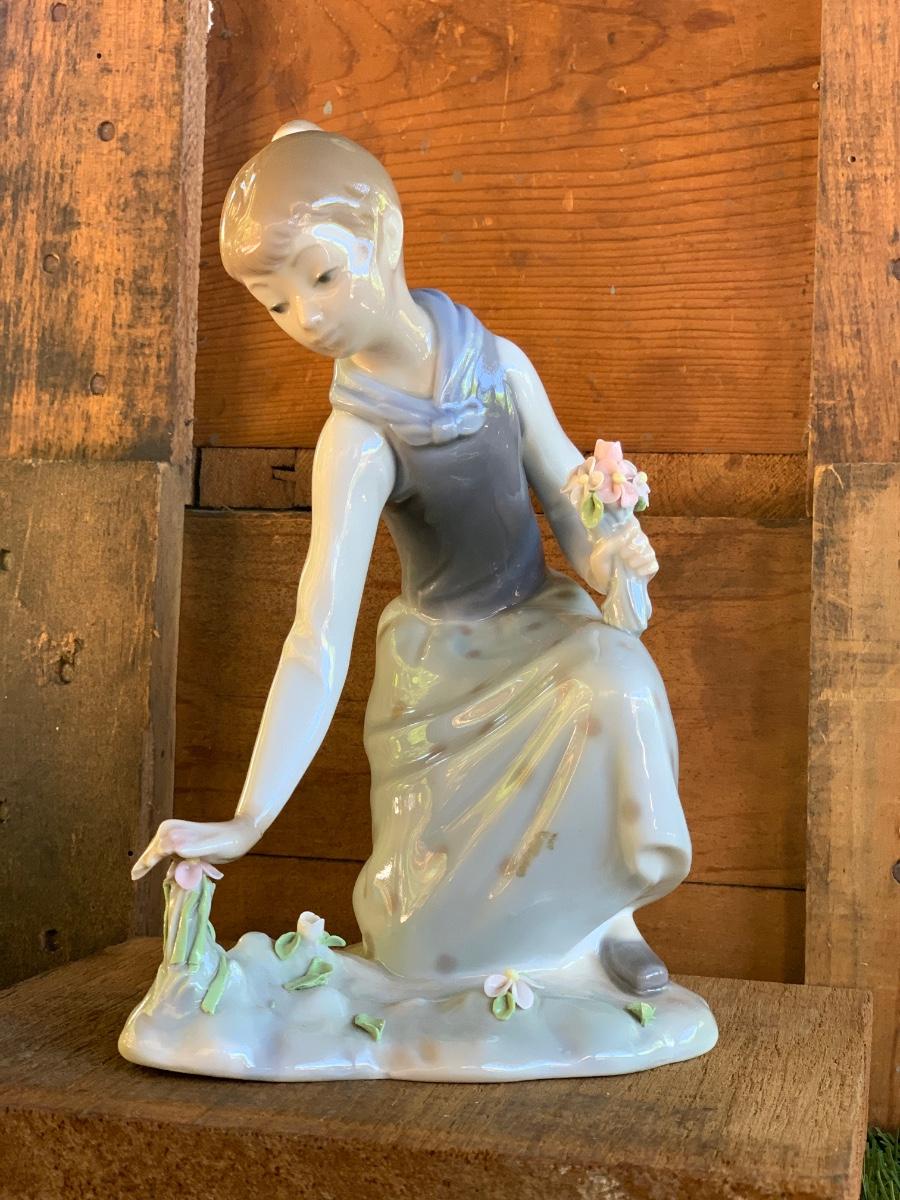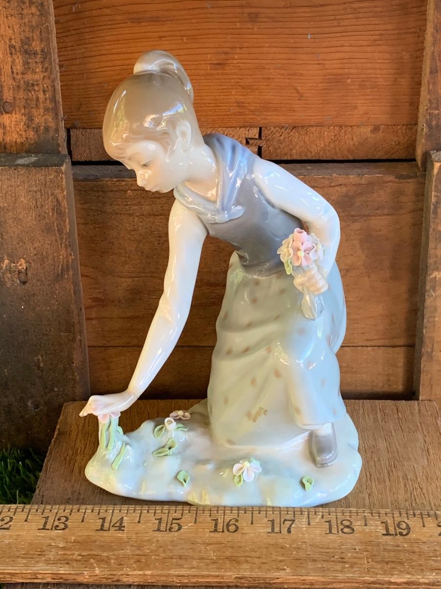 VINTAGE LLADRO 1172 GIRL PICKING & GATHERING FLOWERS FIGURINE