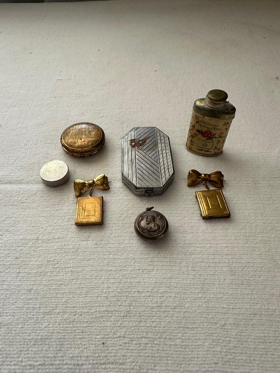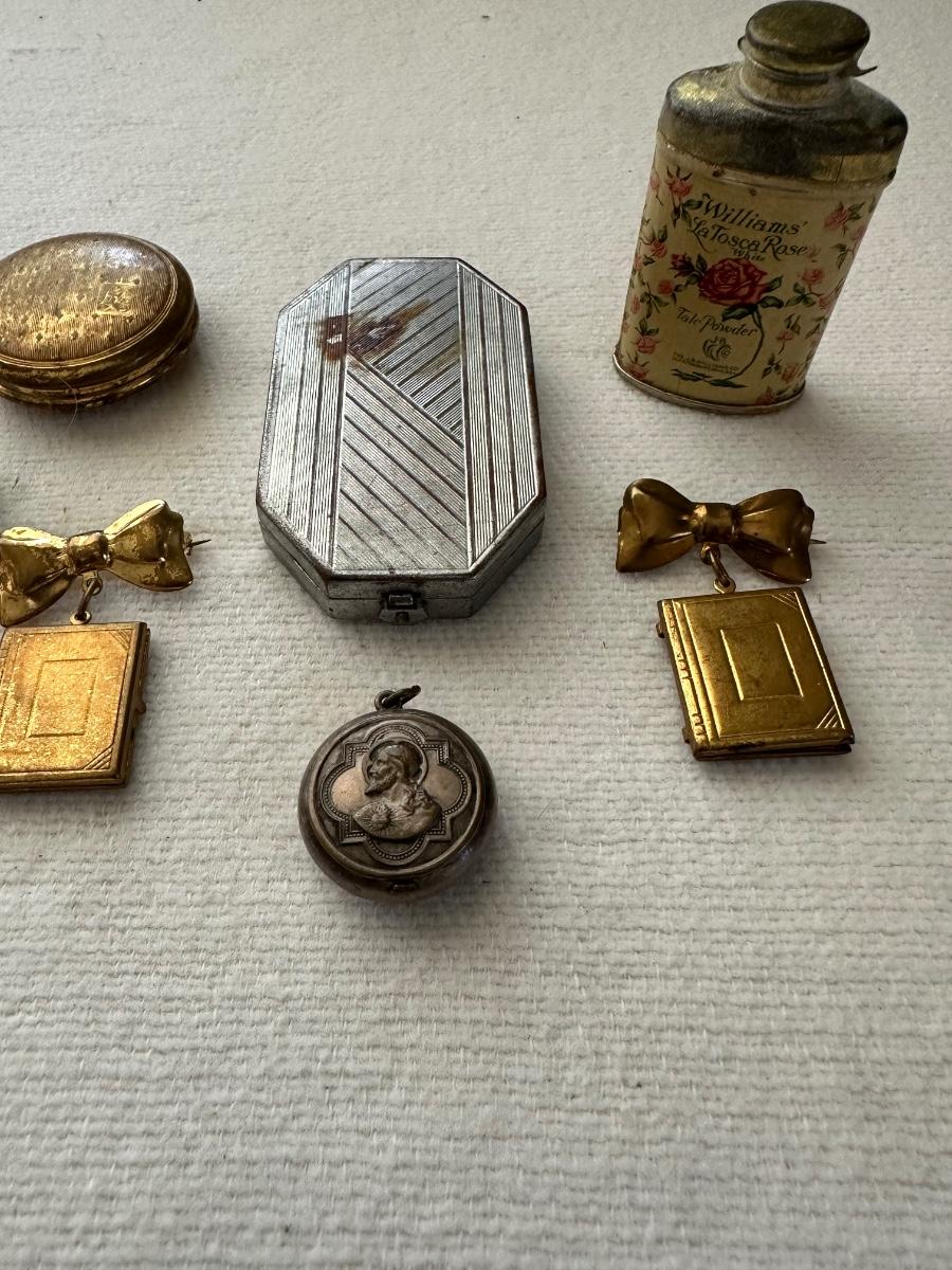 VINTAGE LOCKETS, COMPACTS AND TALC TIN