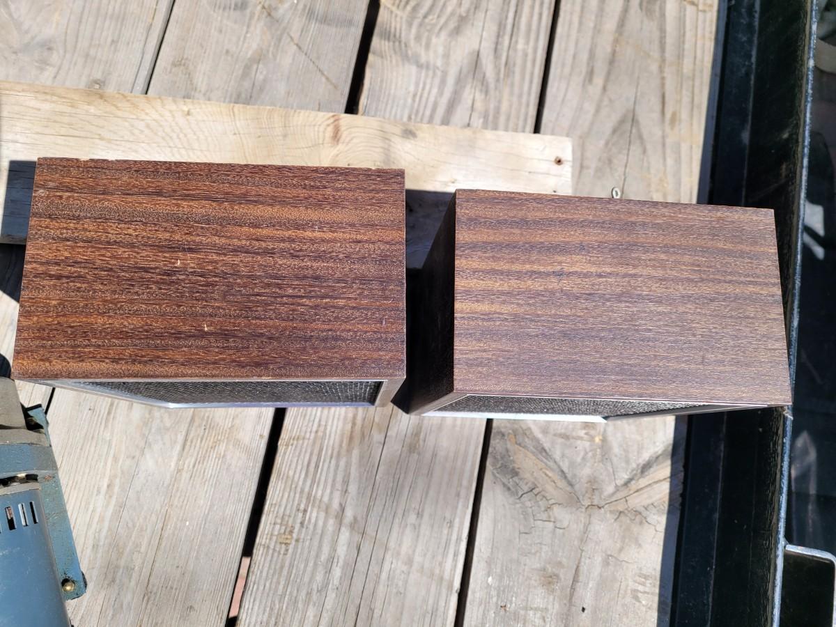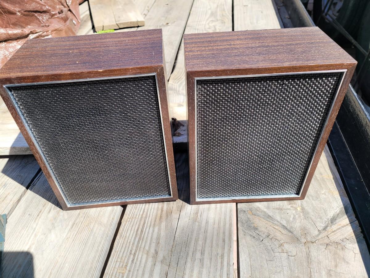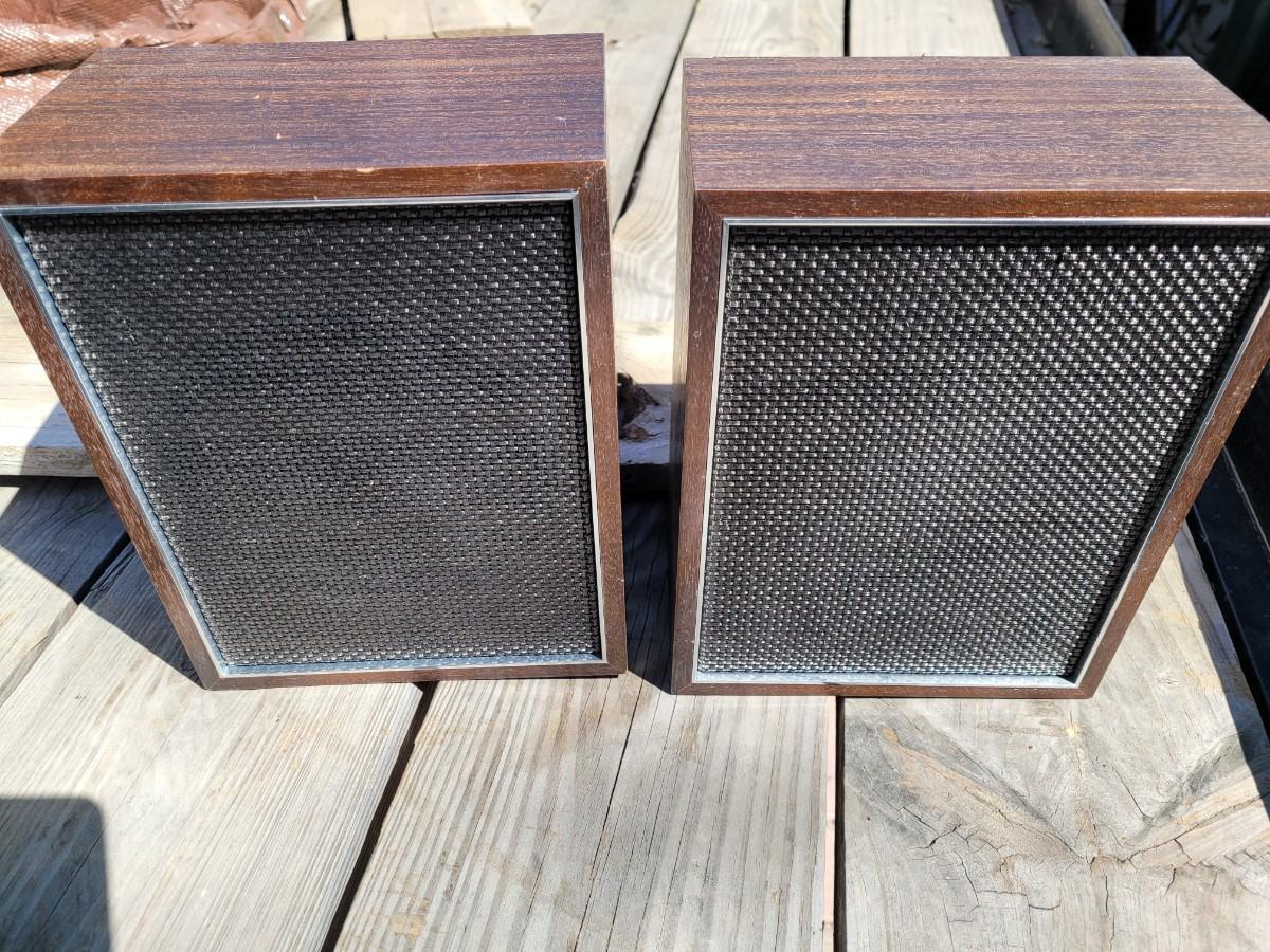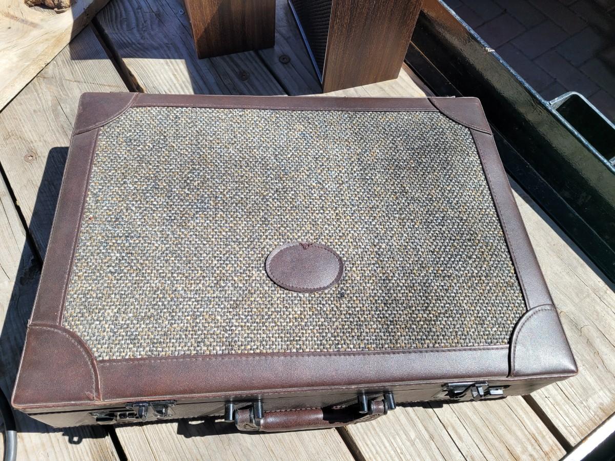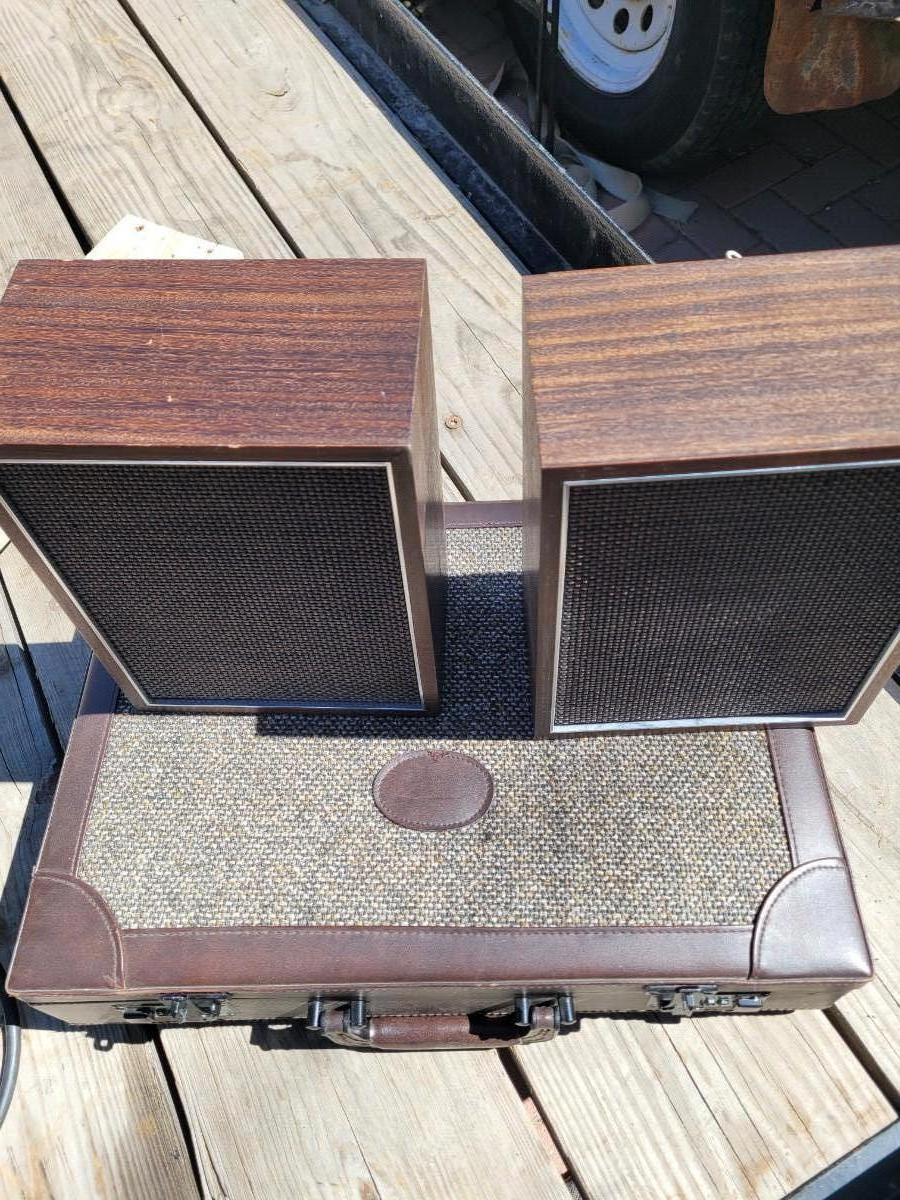 Briefcase locks and looks unused. Bookshelf peakers are unknown wattage and vintage but they are old and they work.