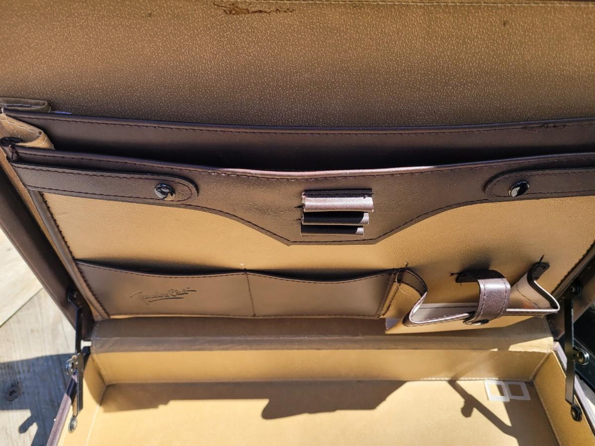 Vintage locking leather briefcase and speakers