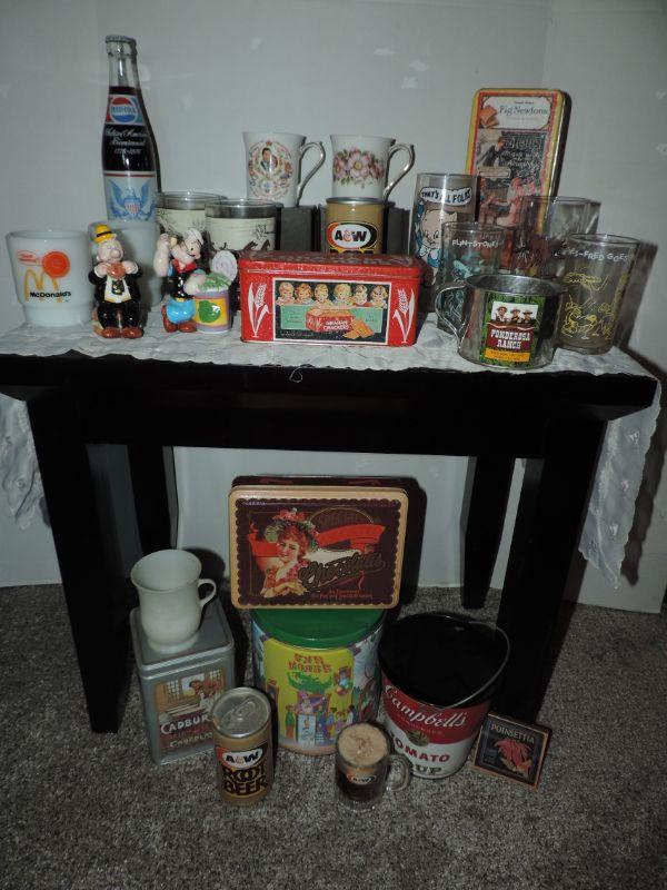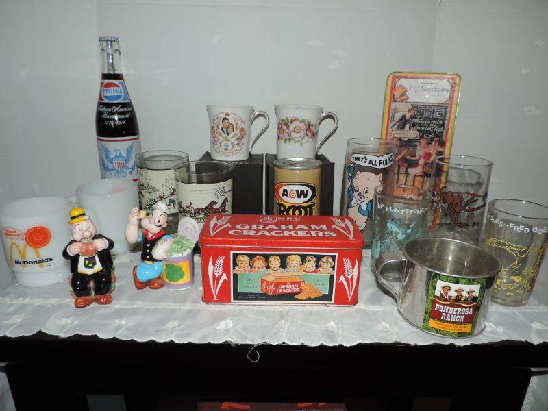 A&W ROOTBEAR PULL TOP CANS, FIREKING MCDONALDS COFFEE CUPS, KOOLAID, PRINCE AND PRINCESS DIANA, FLINTSTONES, AND OTHERS