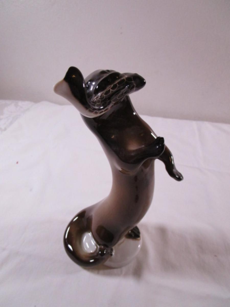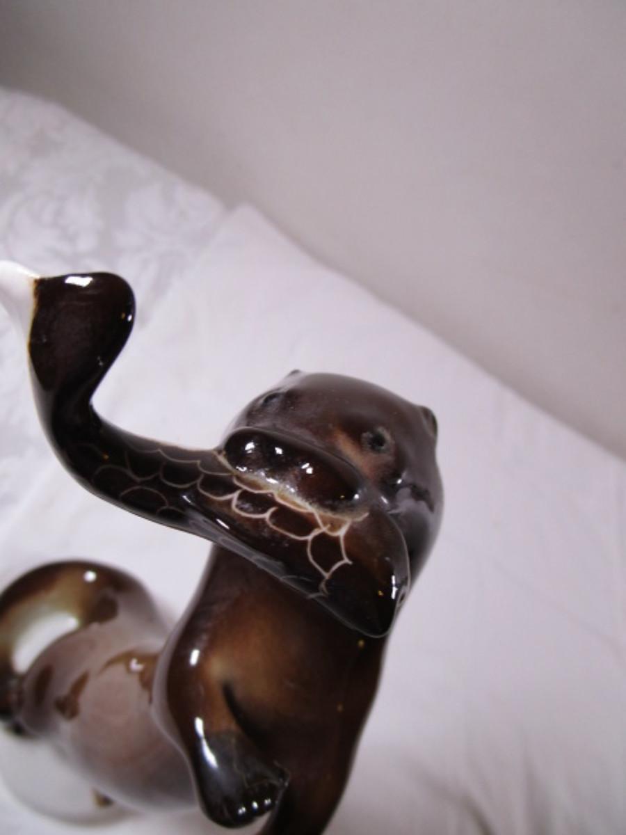 Vintage Lomonosov USSR porcelain Otter with Fish figurine