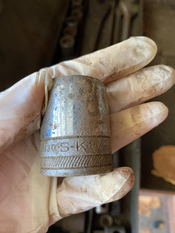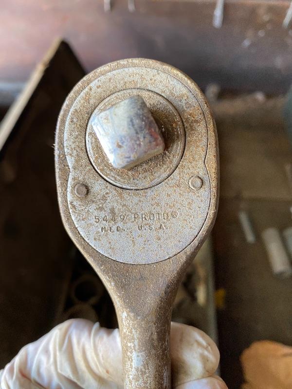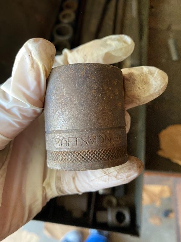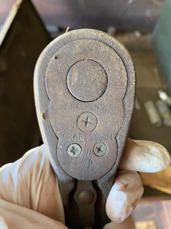 Vintage set of Craftsman & SK hand tools. Ratchets with 12 point sockets. Long C logo on the Craftsman tools. The one ratchet is unbranded. Sockets are Craftsman & SK Tools mix. Metal box is SK Tools. All but one socket looks to be 12 point. A little dirty from use. All sockets look good, not striped.