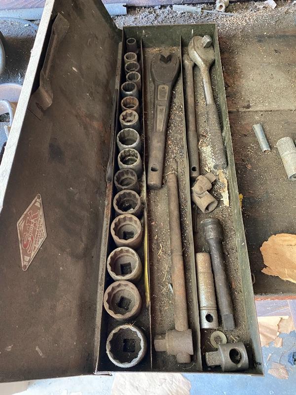 Vintage Long C Craftsman & SK Tools Ratchet Set 12 Point Sockets in Metal Box