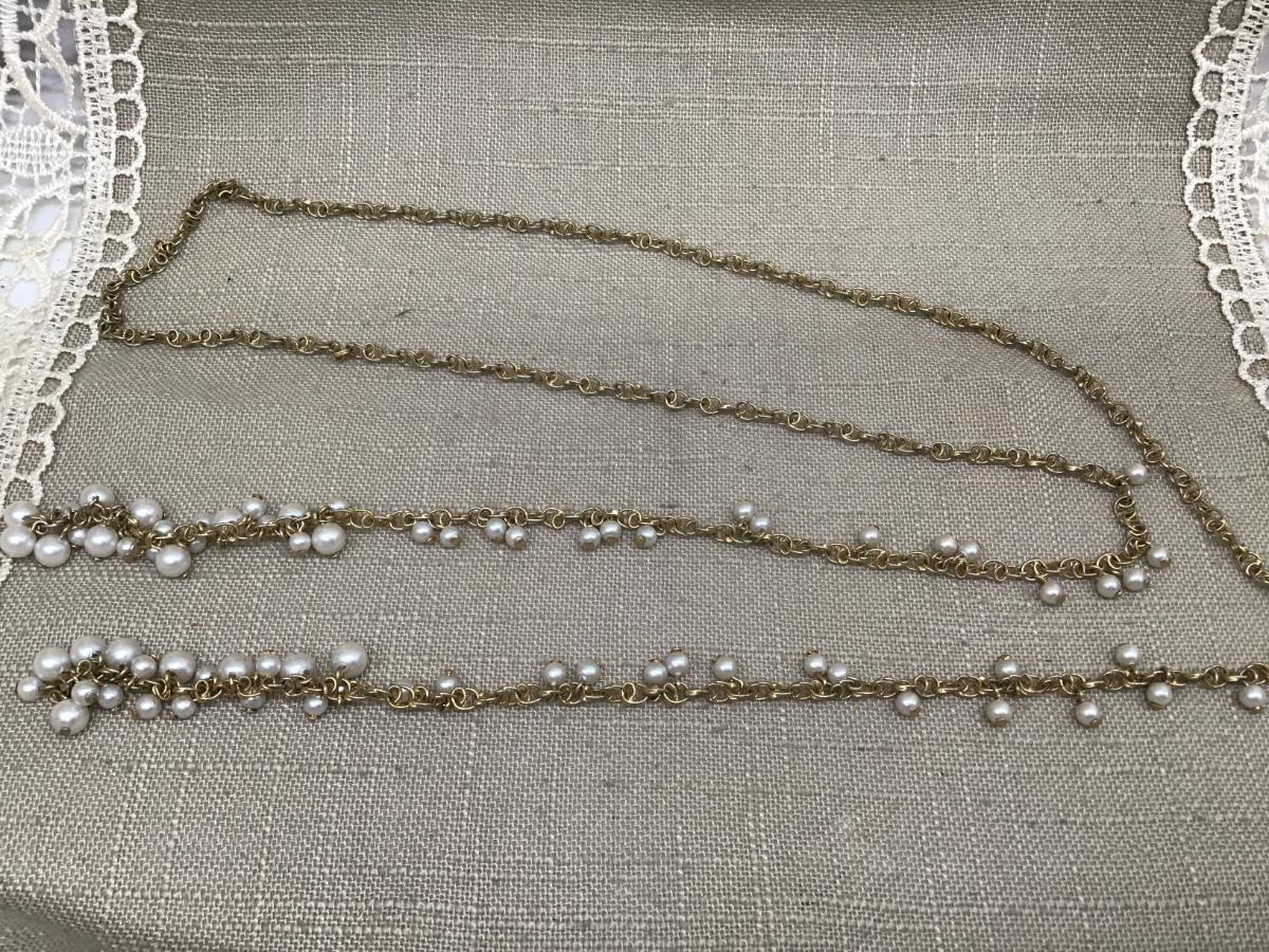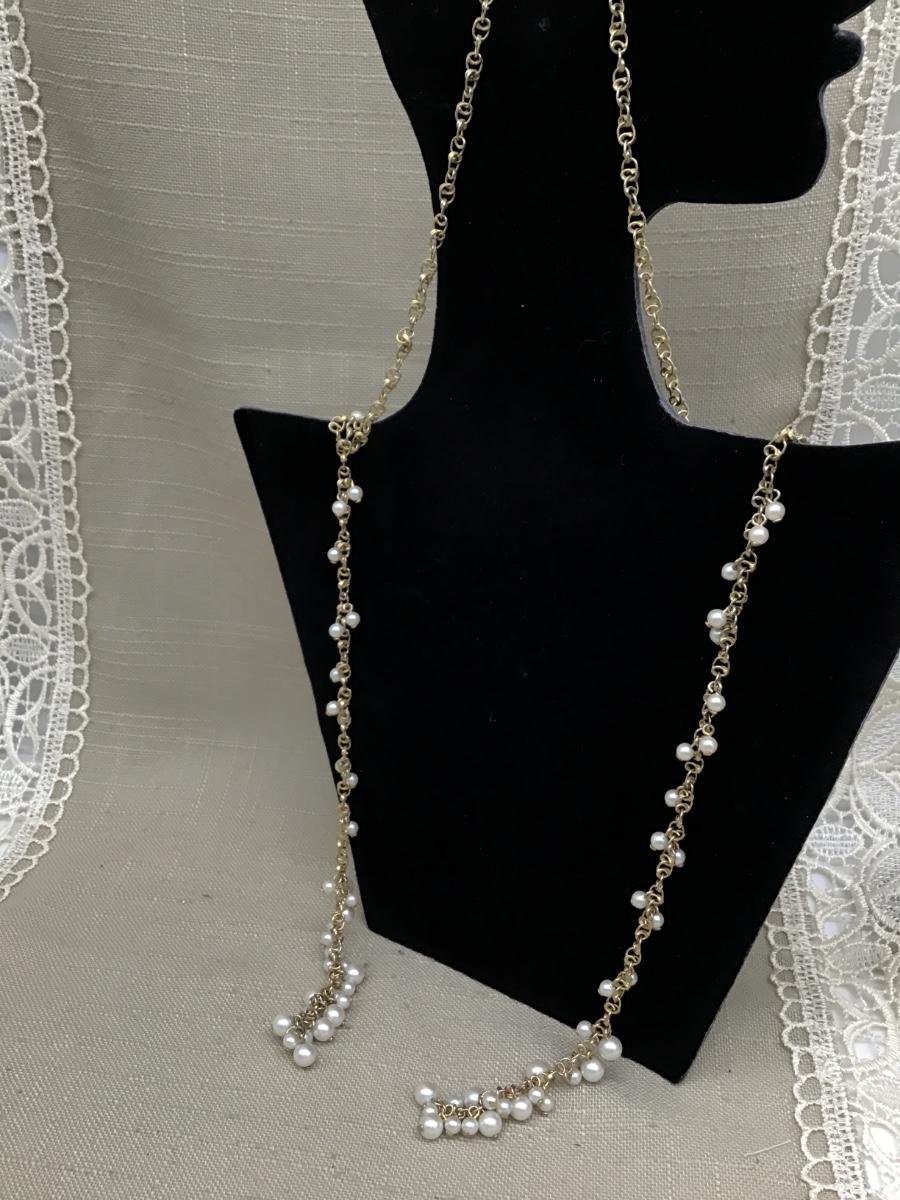 Vintage Long Gold Tone Rope Chain Wrap Style Pearl Tassels Necklace