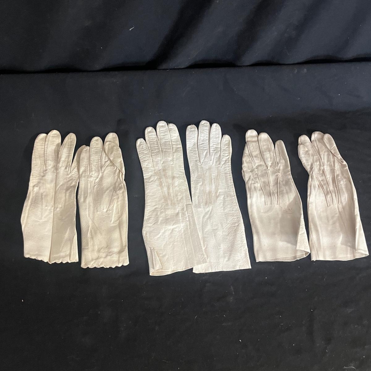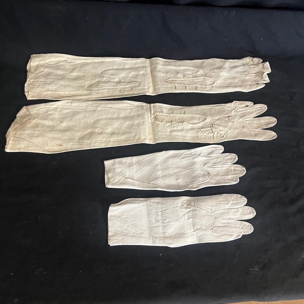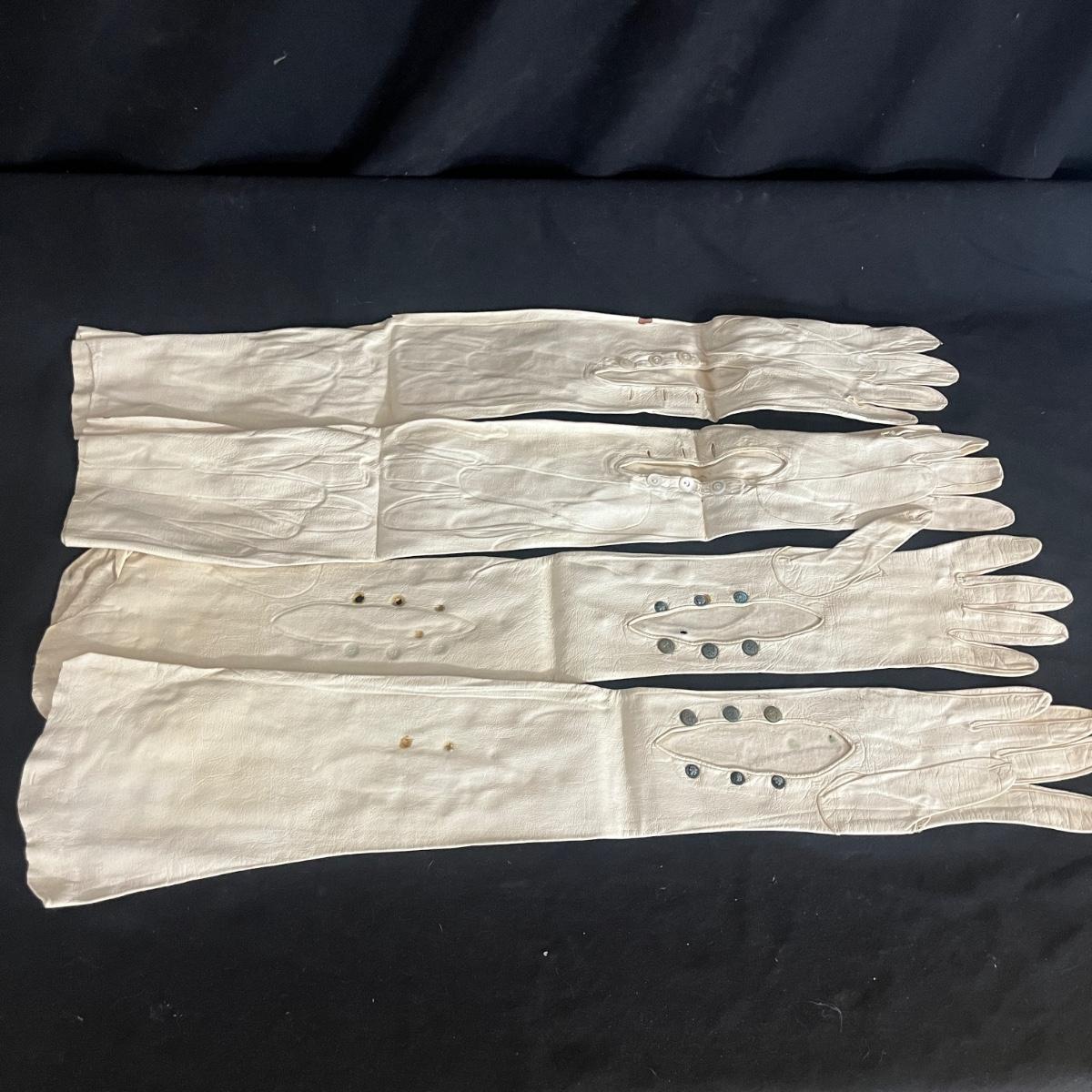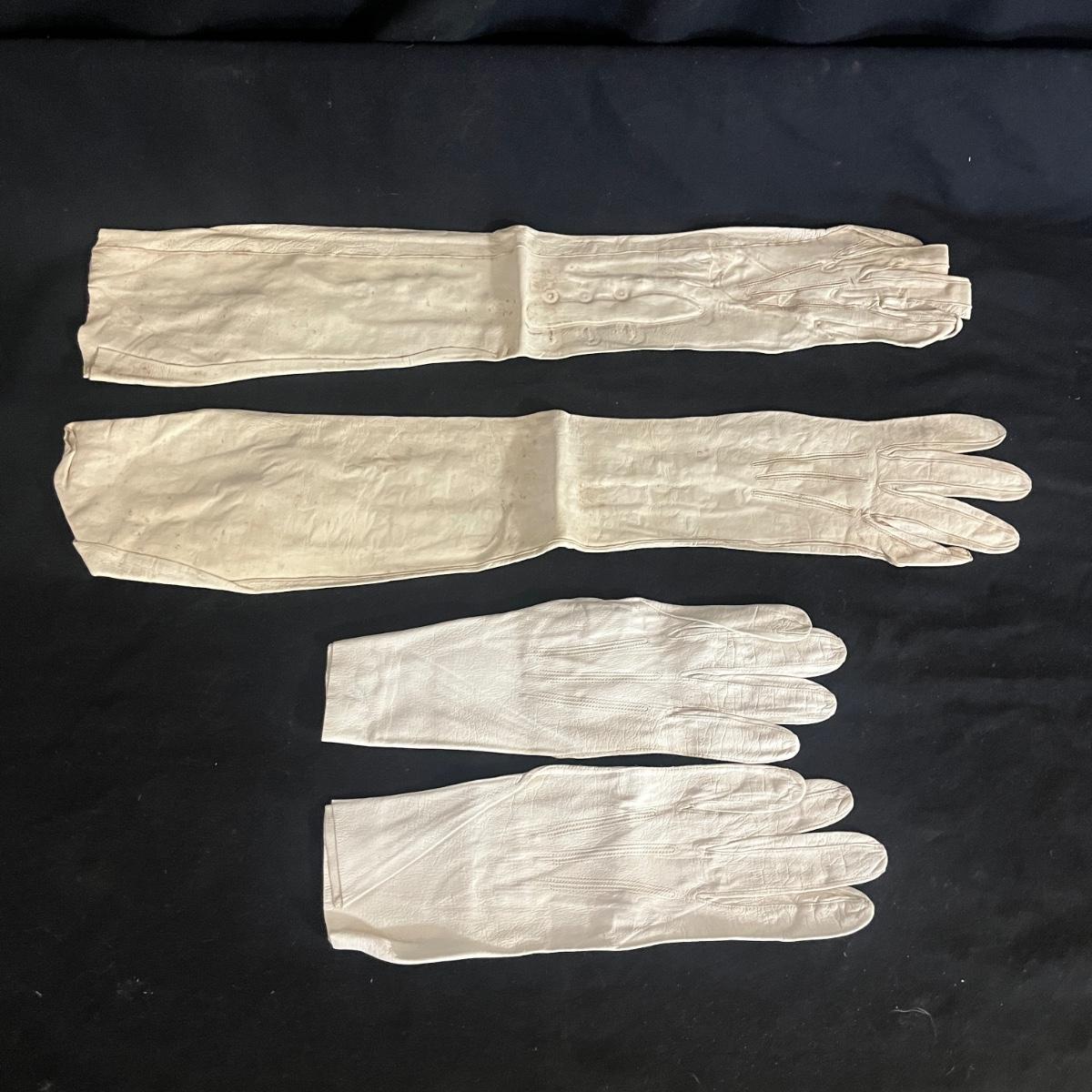Vintage Long White Leather Gloves & Regular Sized Leather Gloves (DR-MG)
