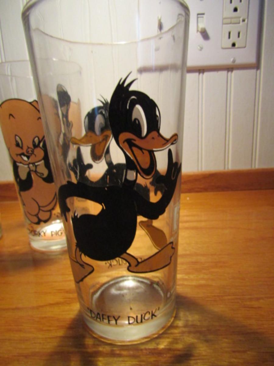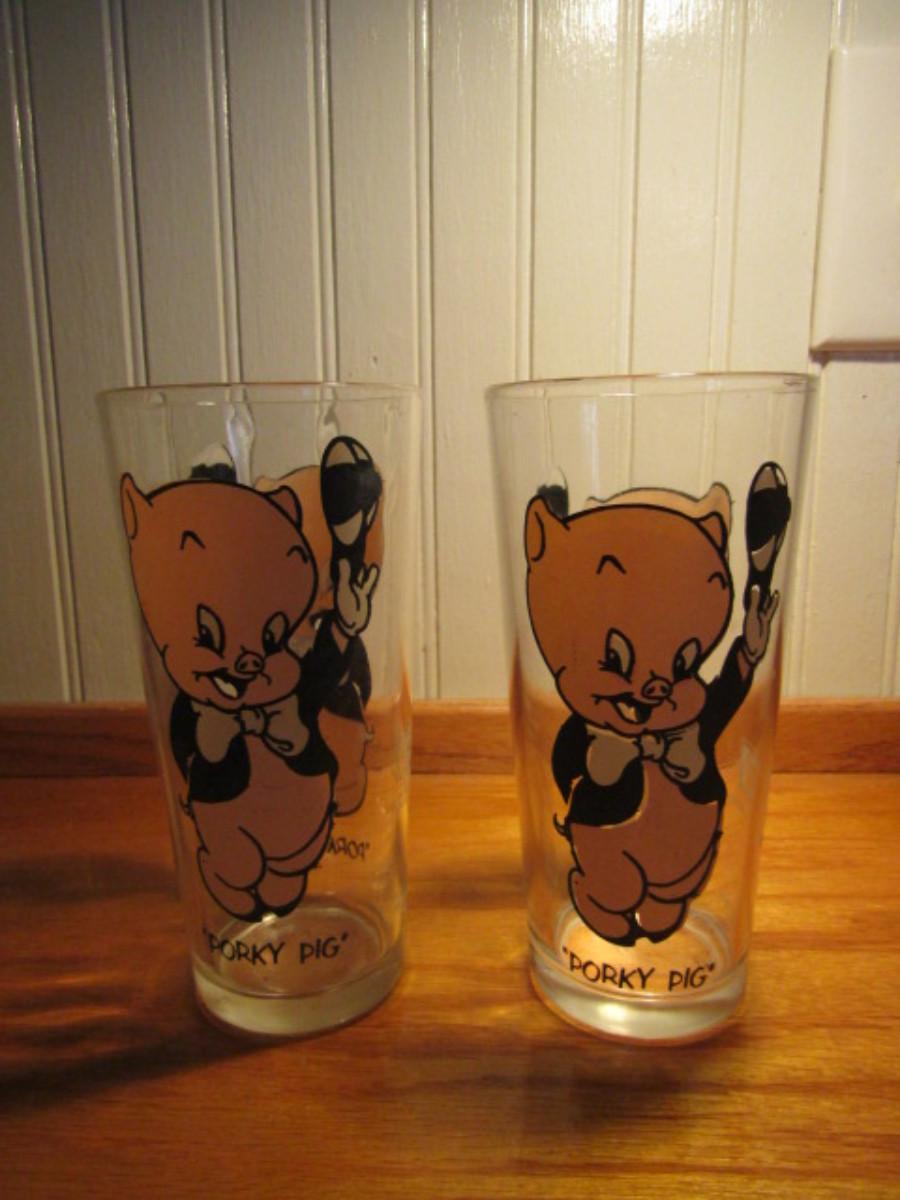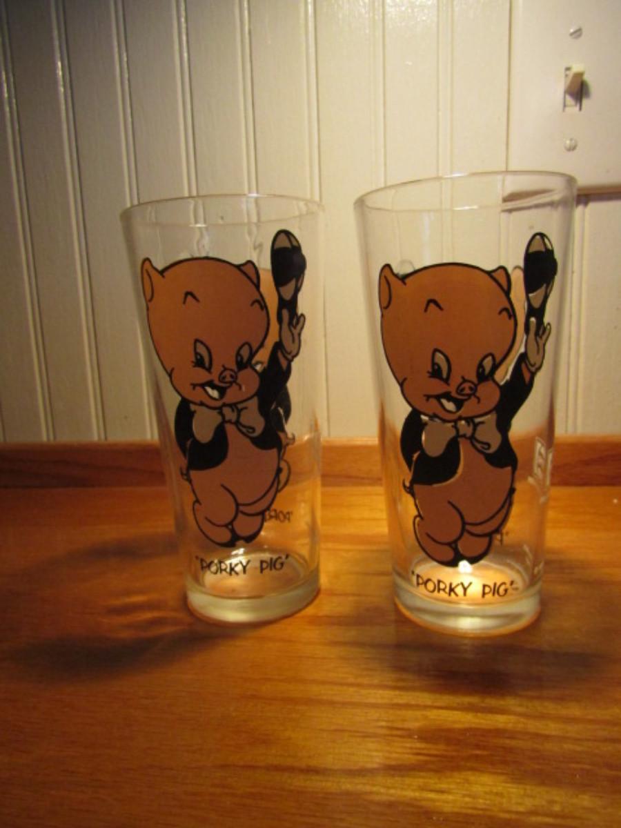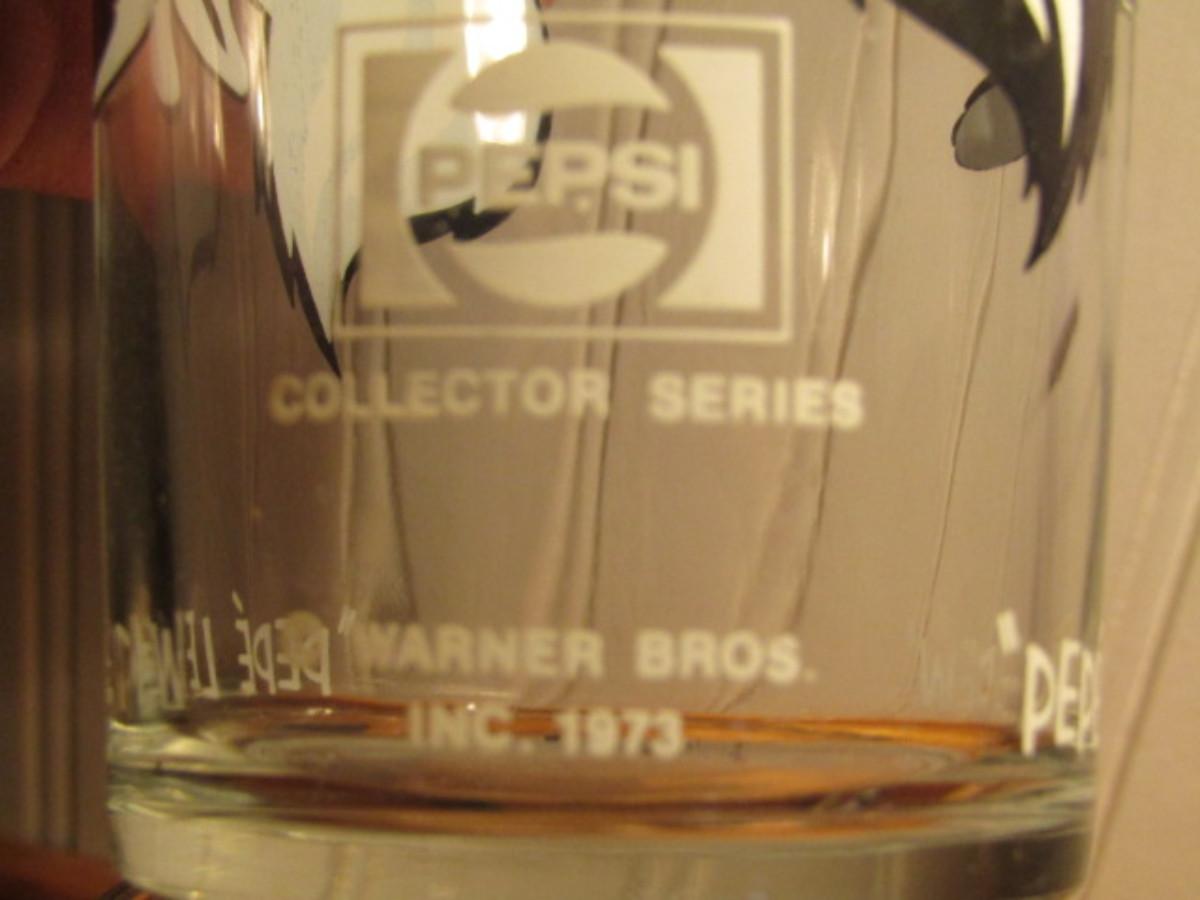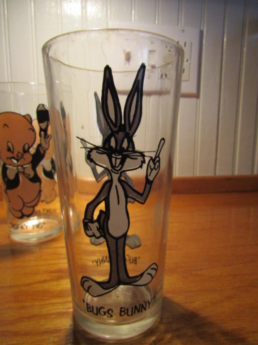 Vintage Looney Tunes Characters Drinking Glasses by Pepsi (1973)- 5 Pieces. Bugs Bunny, Daffy Duck, Pepe Le Pew, and 2 Porky Pig.