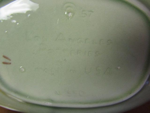 Los Angeles Potteries Large Vegetable/Salad Dish. Made in USA. Measures 10 3/8" x 15 1/4".