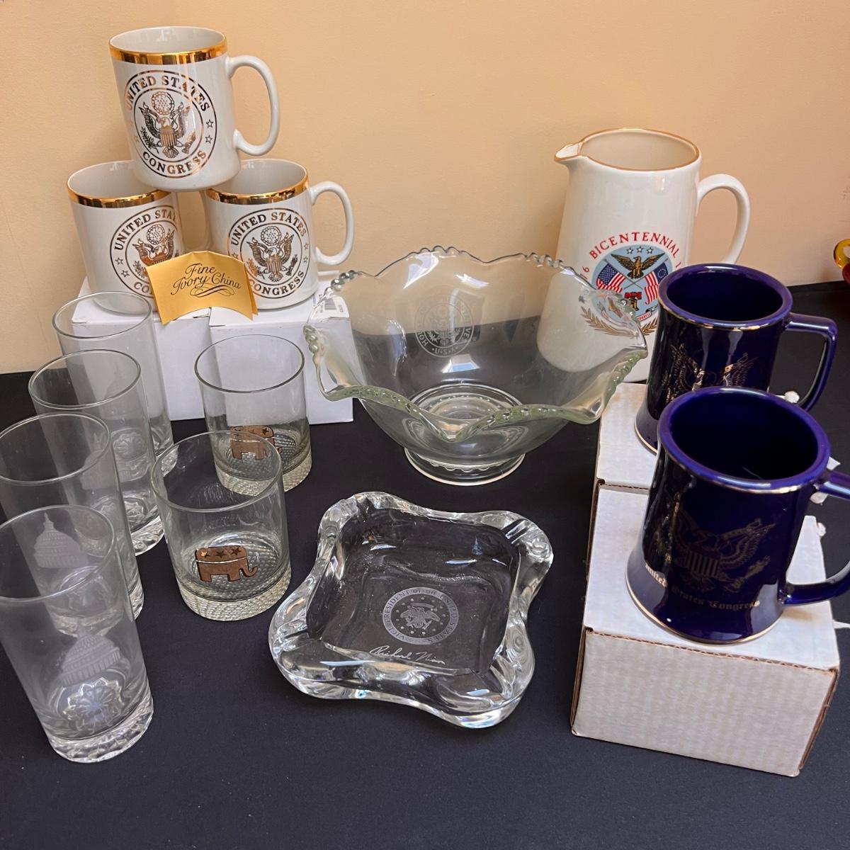 Rare Vice President Richard Nixon Glass Ashtray, congressional fine ivory mugs still in boxes, house of representatives seal bowl and more!