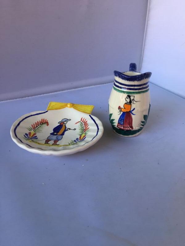 Vintage Lot o TWO  Heriot Quimper Small Plate and Small Picher