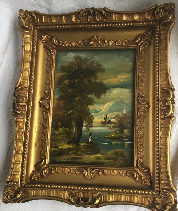 VINTAGE Lot of 2 OIL MINIATURE PAINTINGS EACH SIGNED