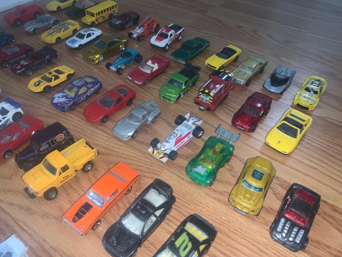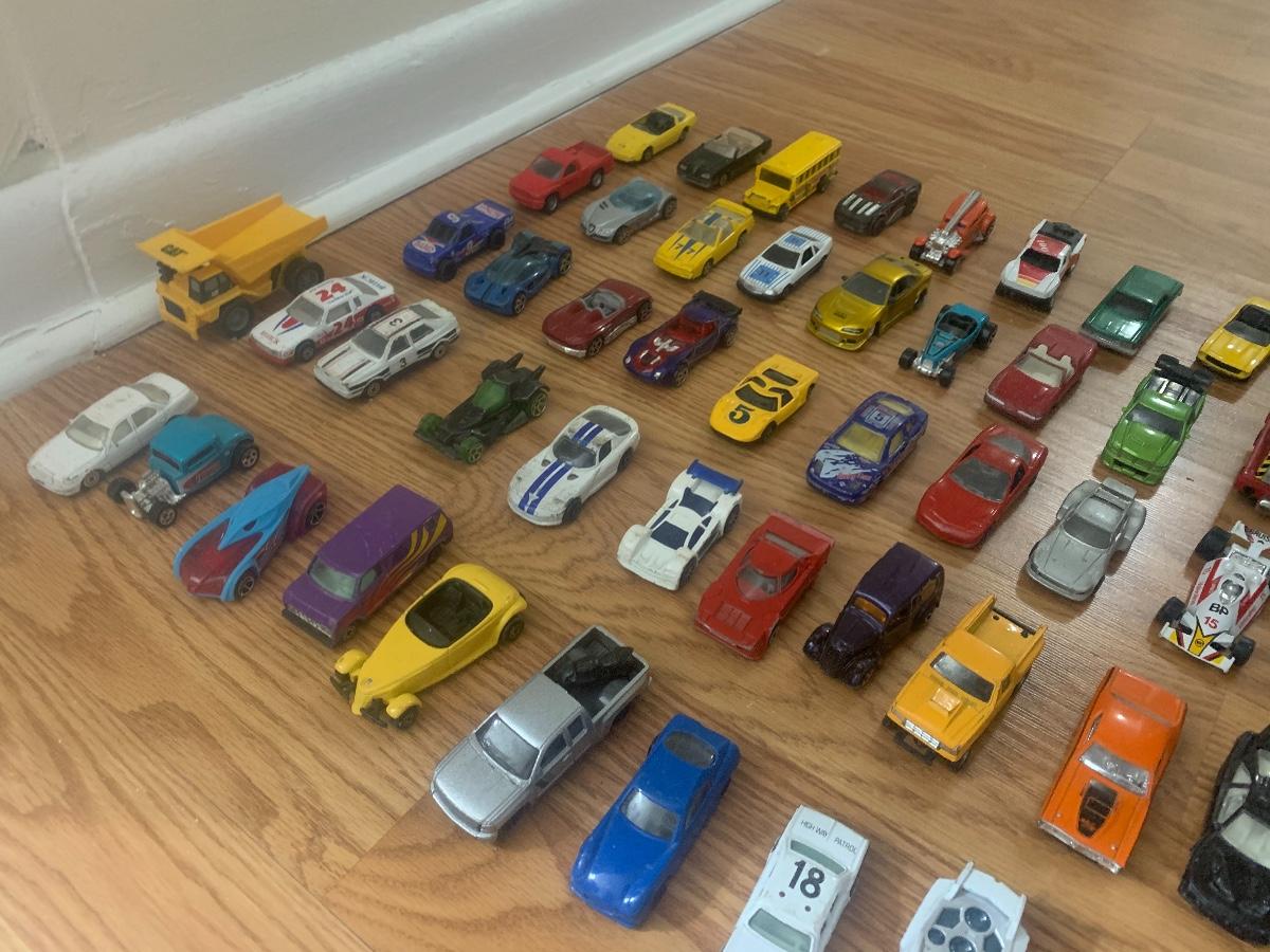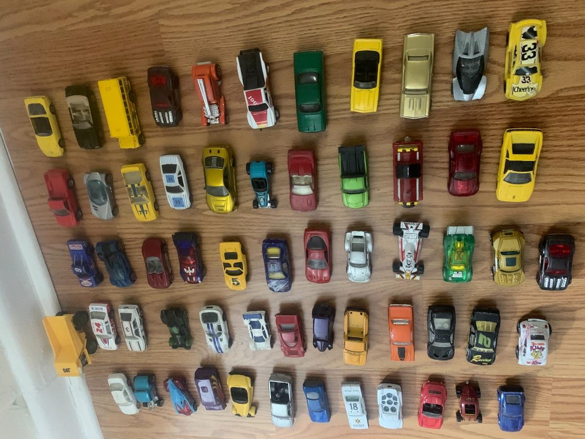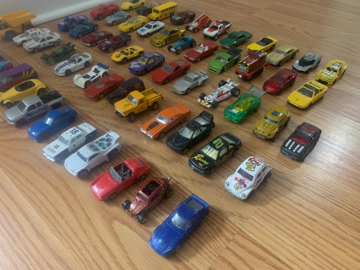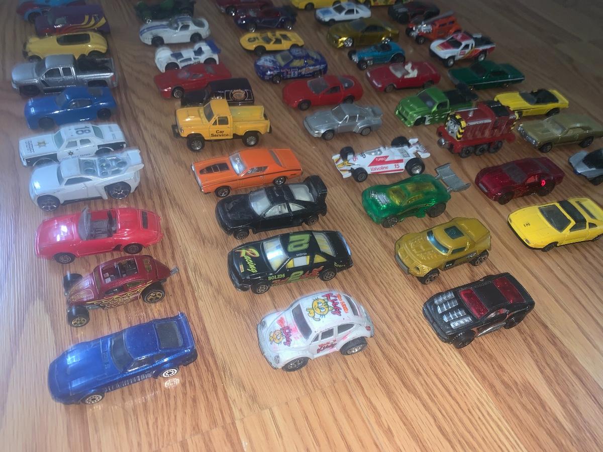 Here is a large assortment of 59 vintage Matchbox, Hot Wheels & more. They are in very good condition.