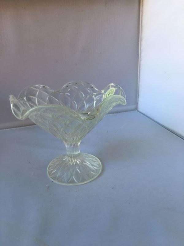 Beautiful ruffled Ice Cream Ruffled Coupes in near fine condition, never used. Each measures 5" height X 6.25 in diameter at the top.