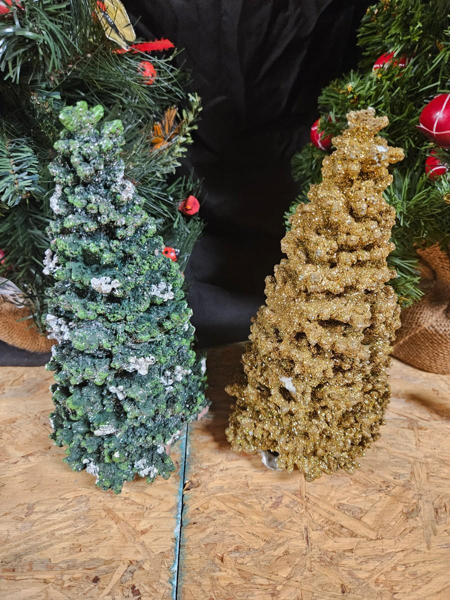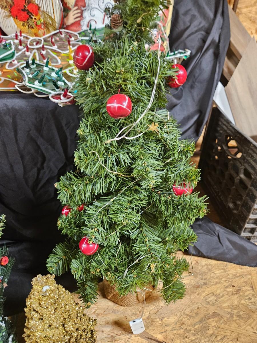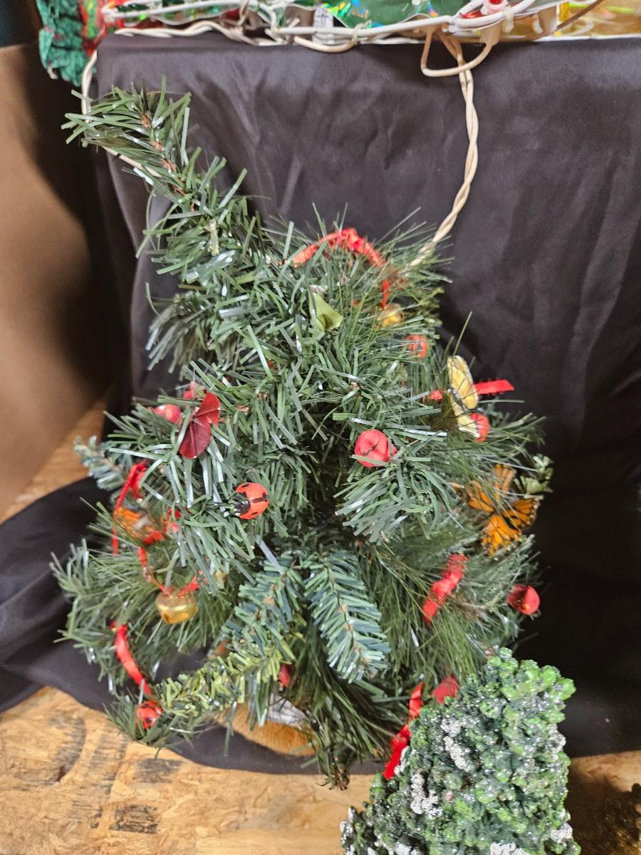 Vintage Lot of 9 Misc Christmas Decorations Including Pillows, Light Up Tinsel Star and Small Trees