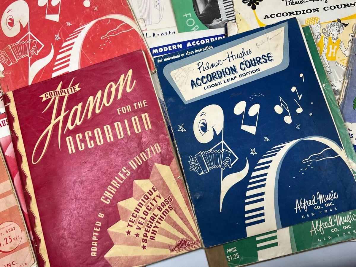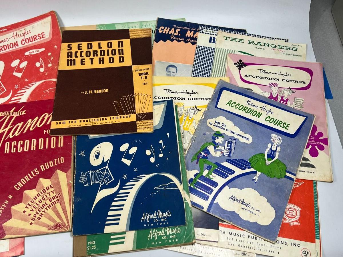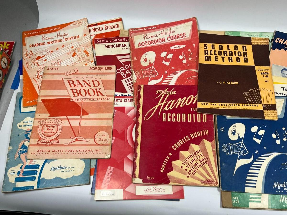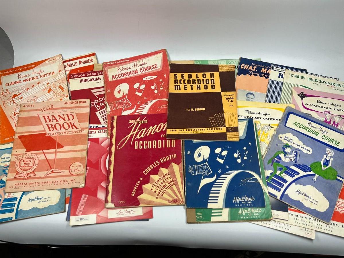 Vintage Lot of Accordion Song Books. In used vintage condition. Wide variety of songs to learn playing an accordion.