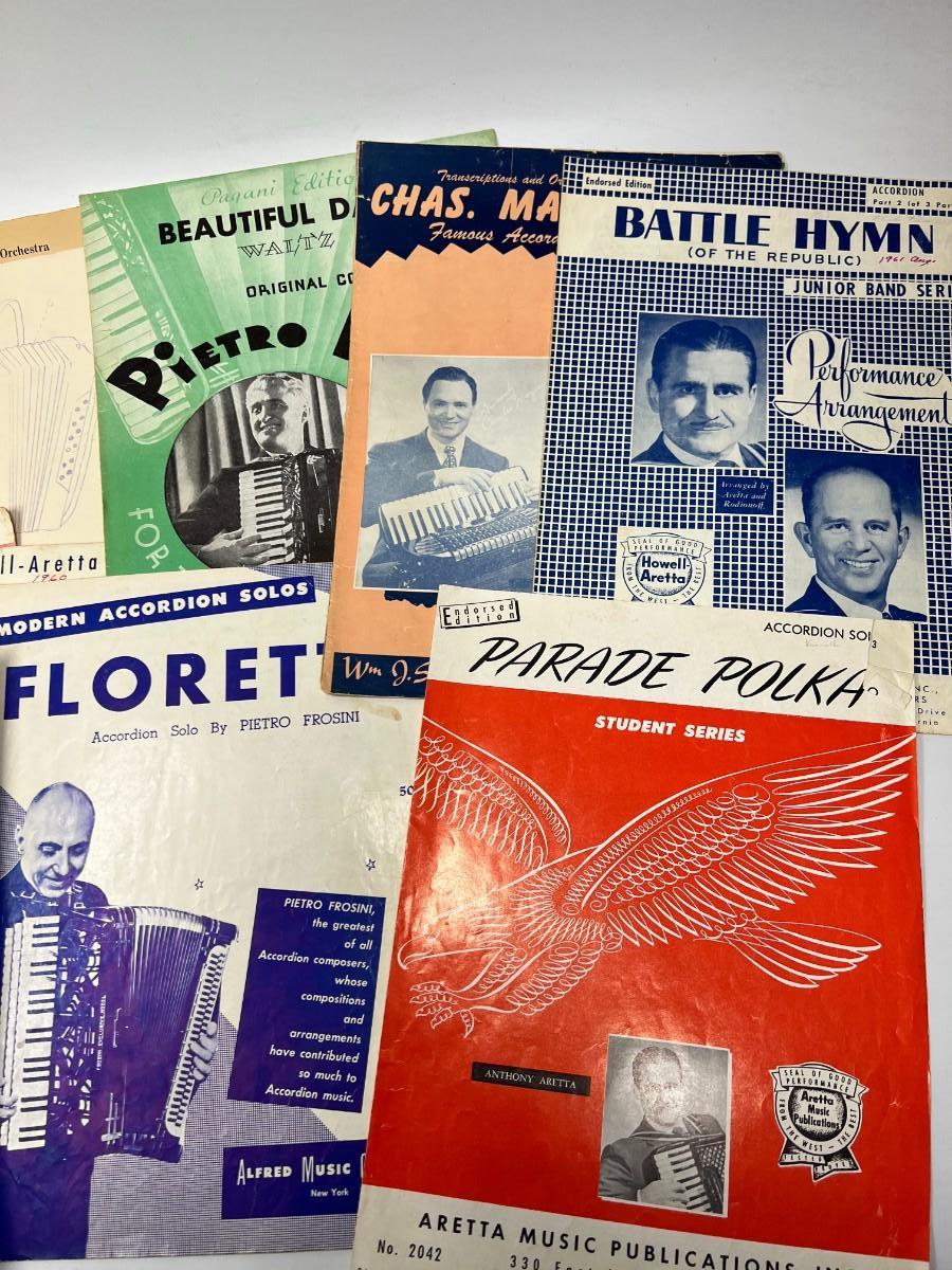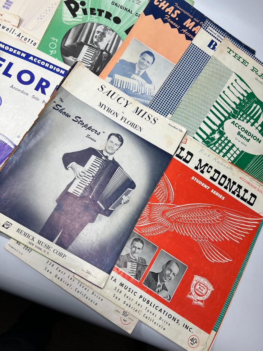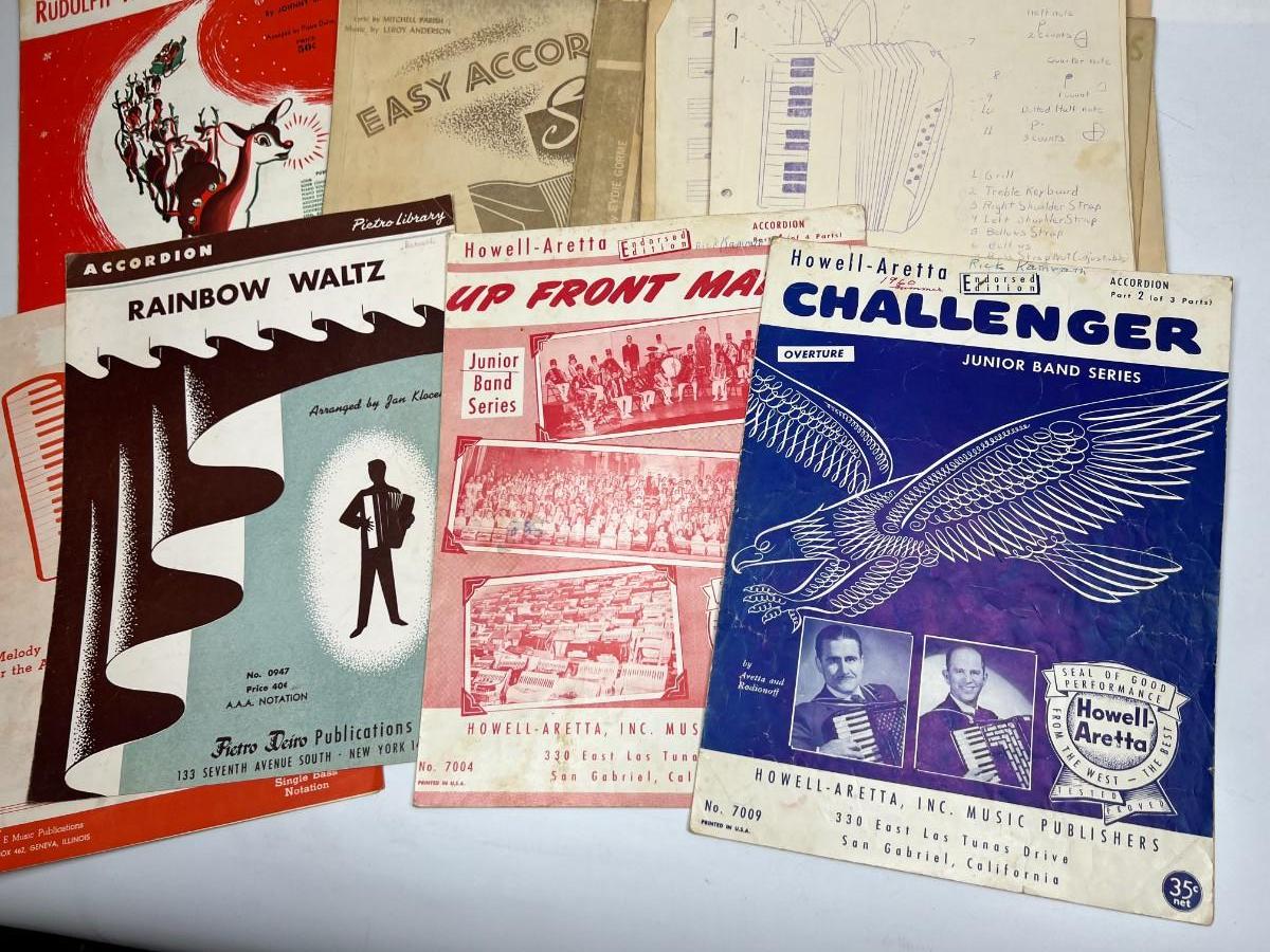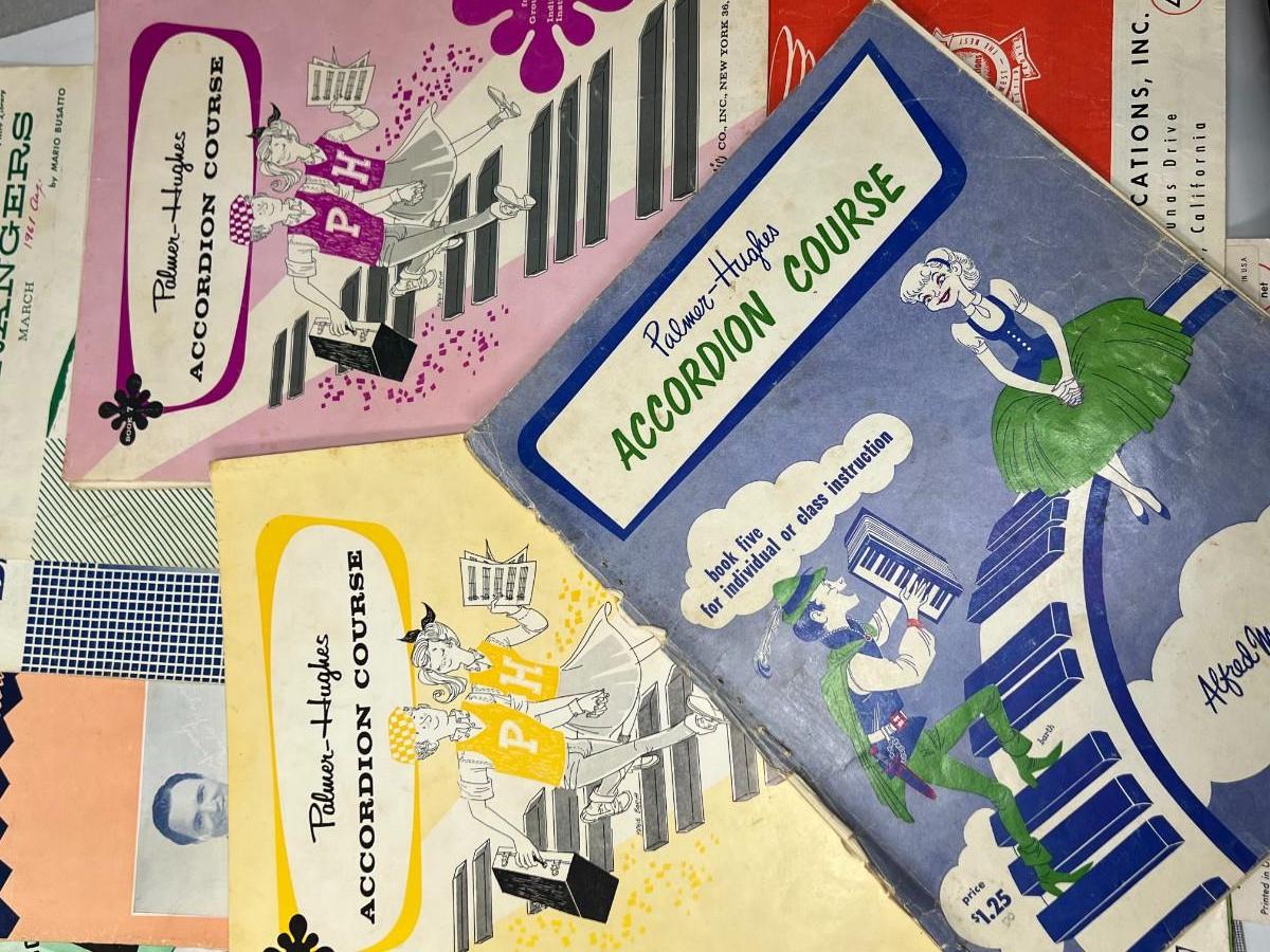 Vintage Lot of Accordion Song Books. In used vintage condition. Wide variety of songs to learn playing an accordion.