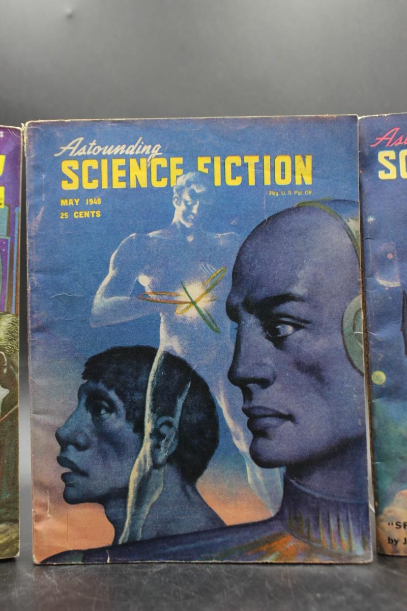 Vintage Lot of Astounding Science Fiction Pulp Fiction Novels, there is some vintage wear to all three books and there is a slight rip on the cover of one of the books. Check pictures for more details and for sizing.