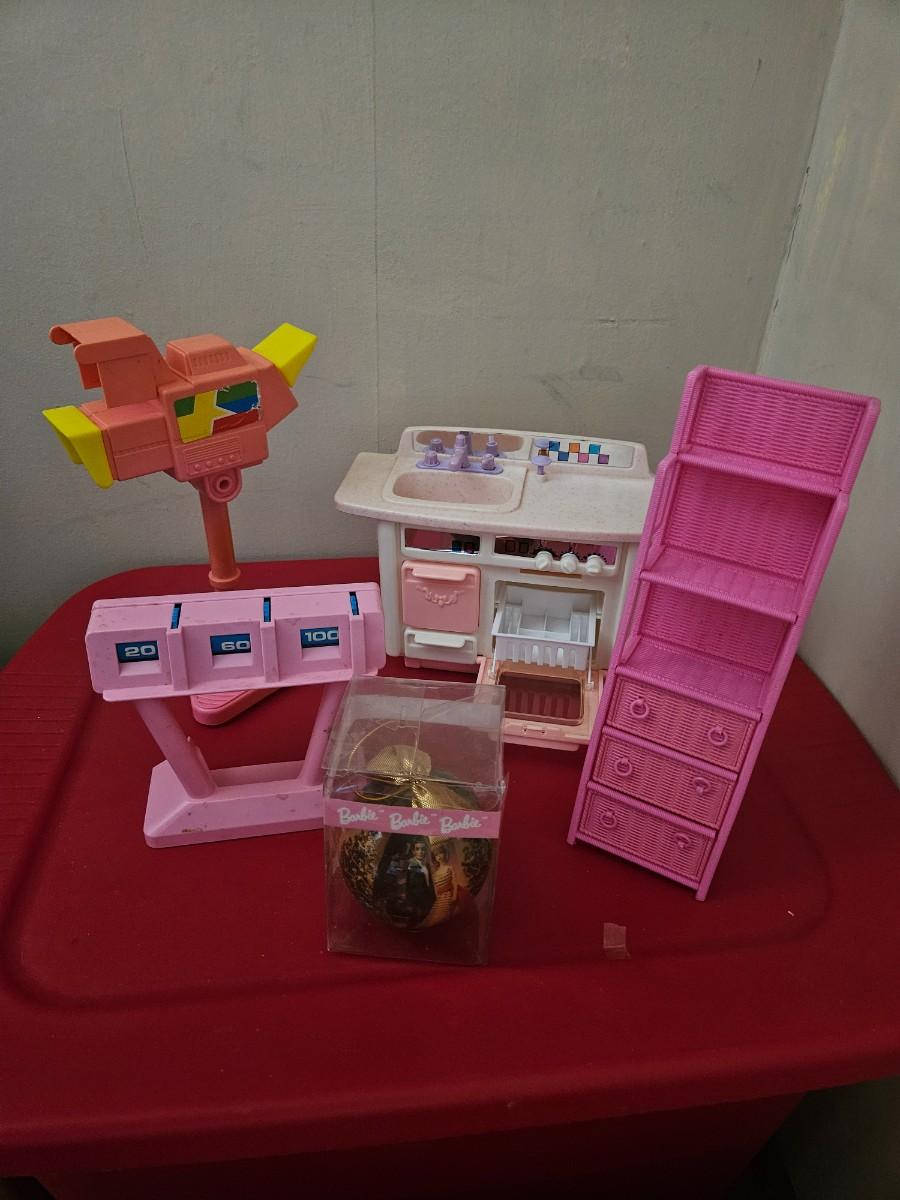 Vintage Lot of Barbie Accessories Including Game Show Setup, Dishwasher and Ornament