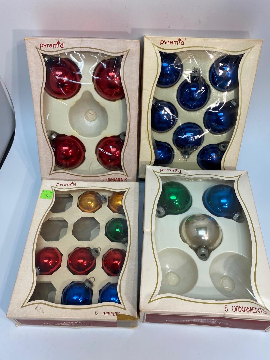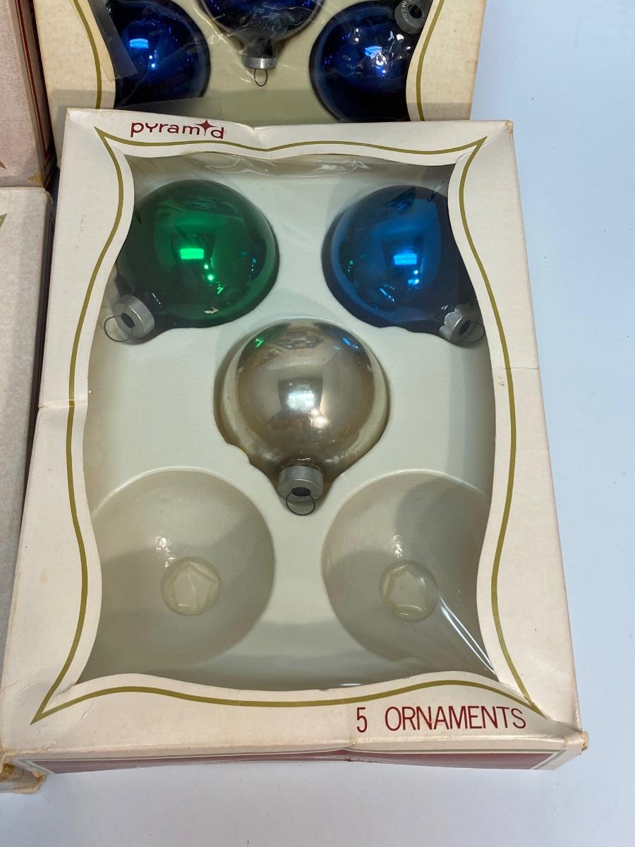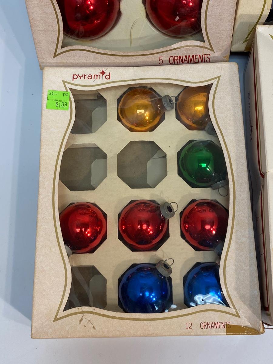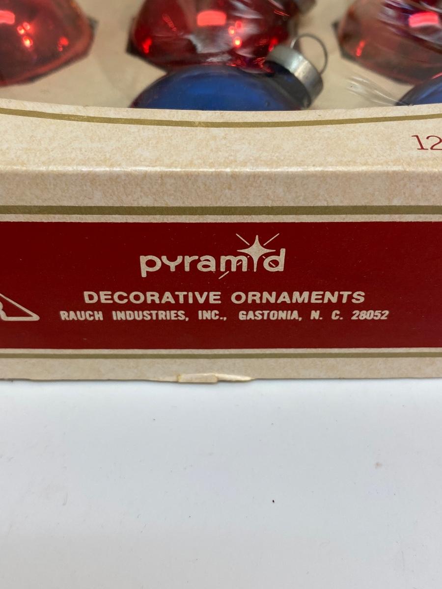 Vintage Lot of Colorful Pyramid Brand Glass Ball Christmas Tree Ornaments