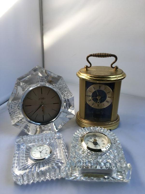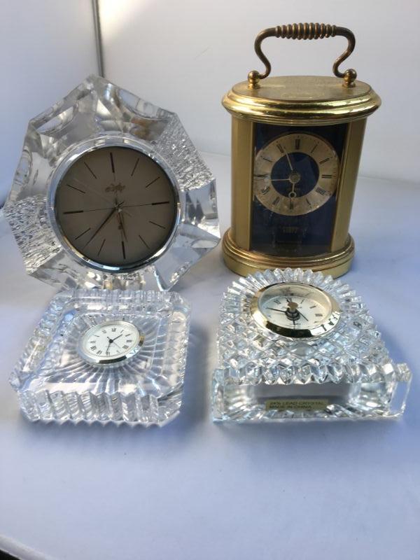 Vintage Lot of Crystal Paperweight and One Mantle Clocks