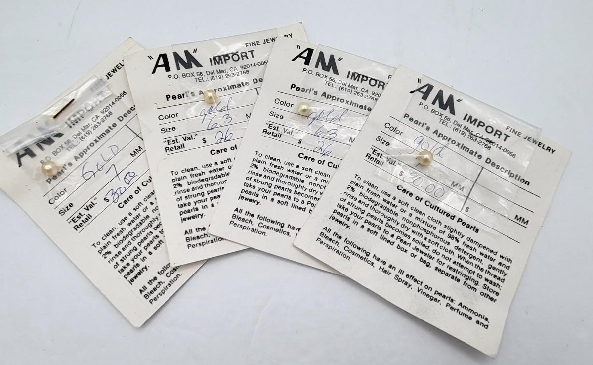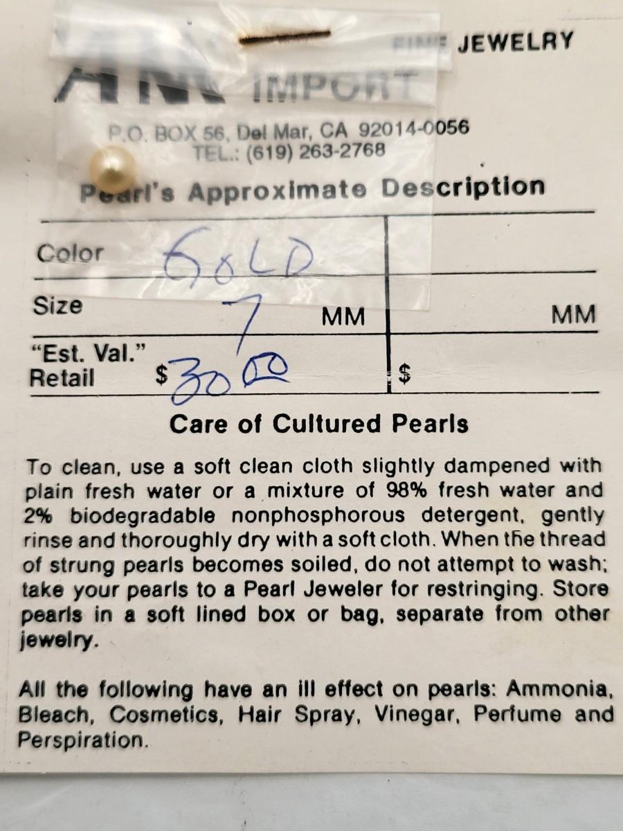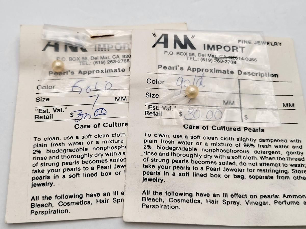 All four "gold" hues cultured pearls on original COA/Appraisal Value cards.
