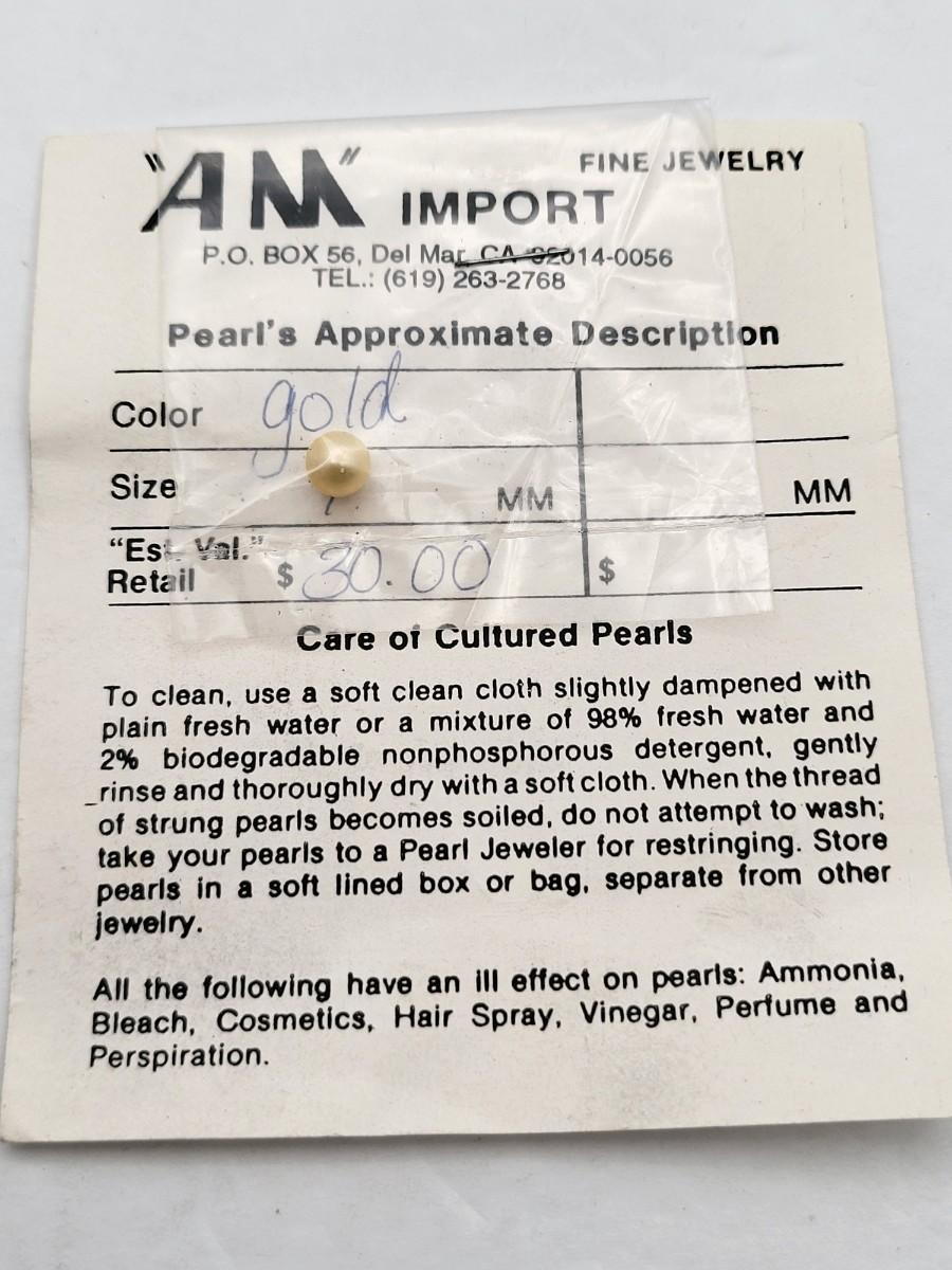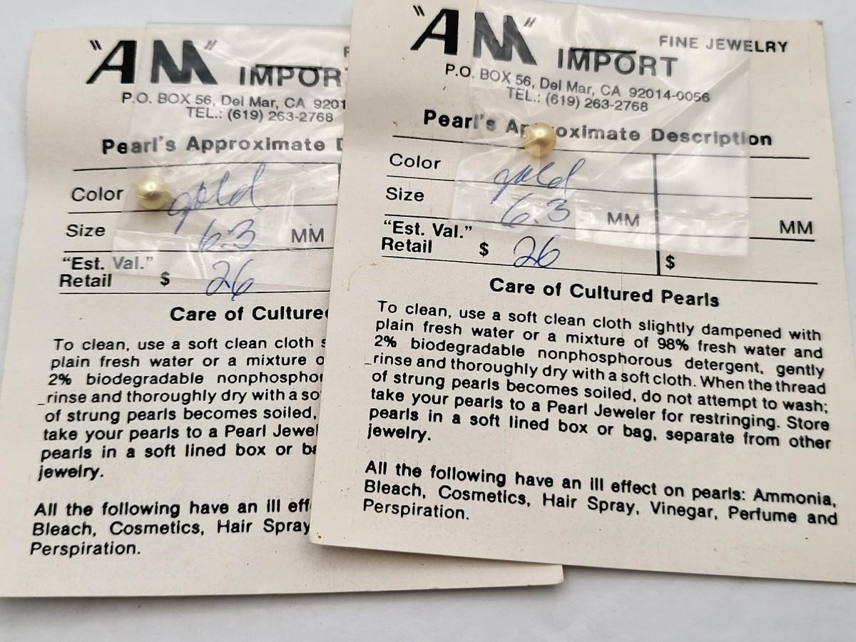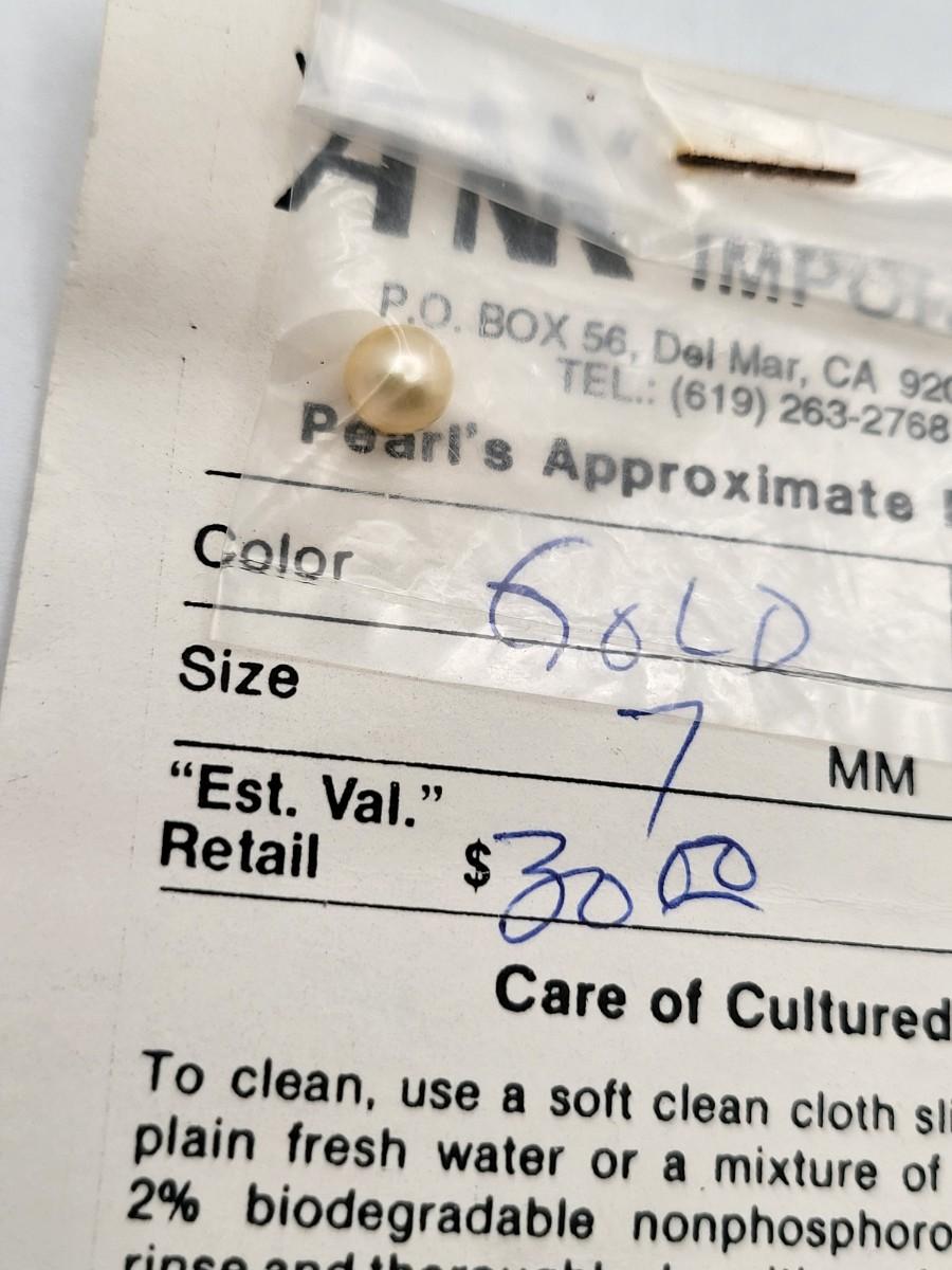 All four "gold" hues cultured pearls on original COA/Appraisal Value cards.