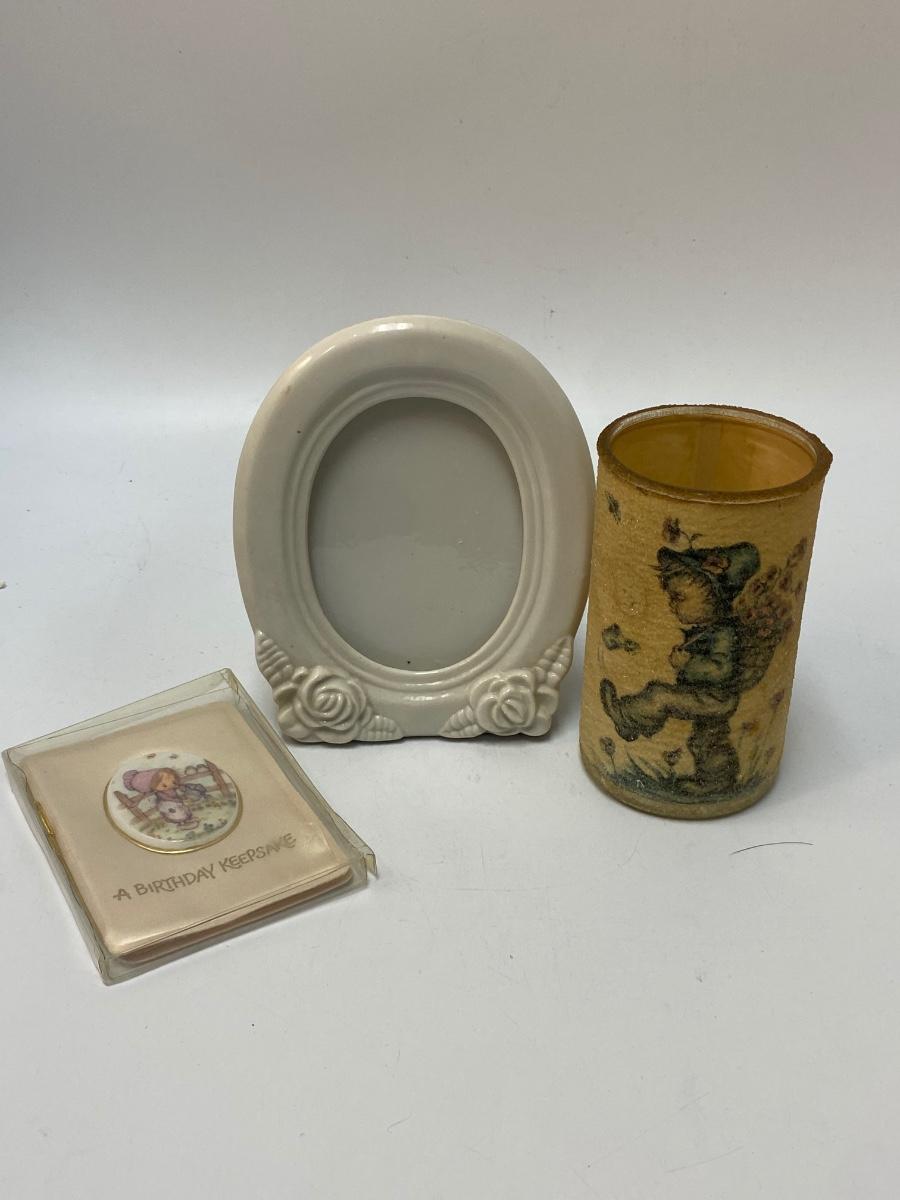 Vintage Lot of Infant Toddler Keepsakes Ceramic Frame Container, Hallmark Booklet, & More