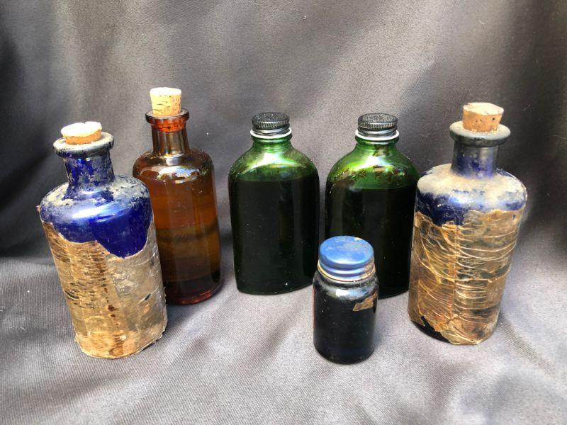 Lot #32; Vintage Lot of Mixed Blue, Amber and Green Medicine Pharmaceutical BottlesLot #32;
