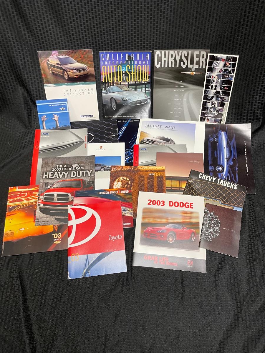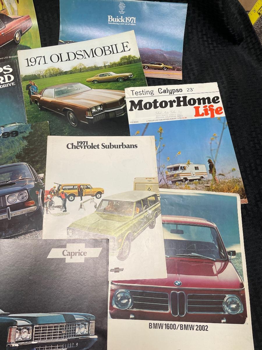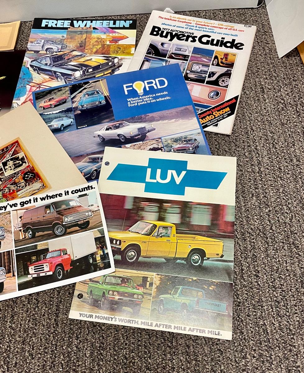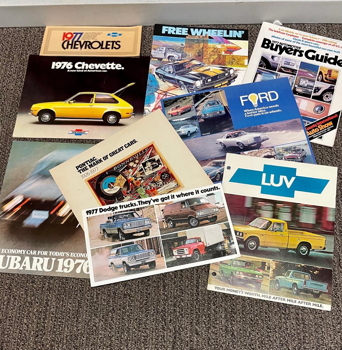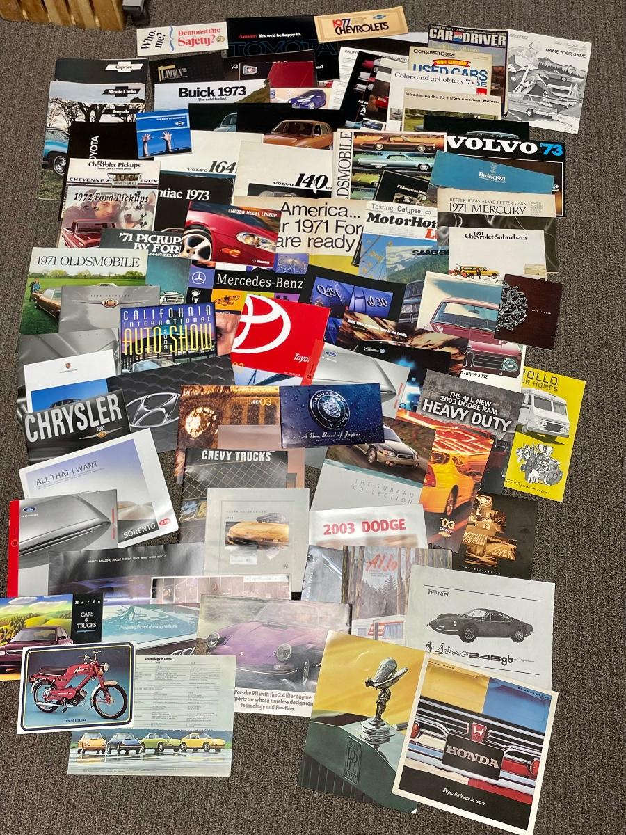 Over 100 new car, truck, RV, trailer and other vehicle brochures, buyers guides, and magazines. Years covered are 1972, 1972, 1973, 2976, 1977, 1986, 1988, 1989, 1998, 1999 and 2003.