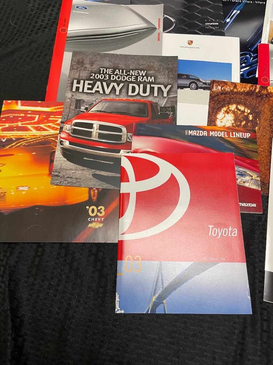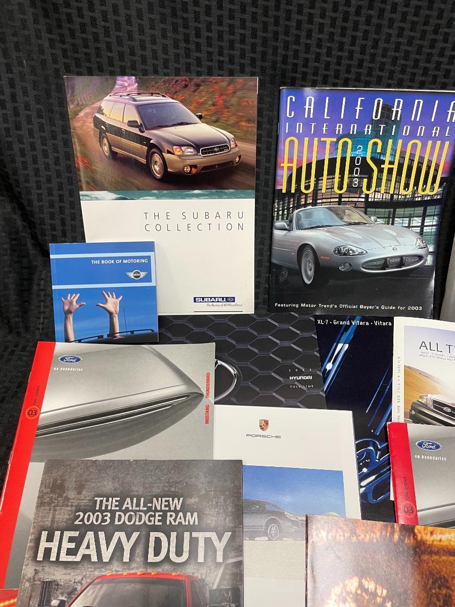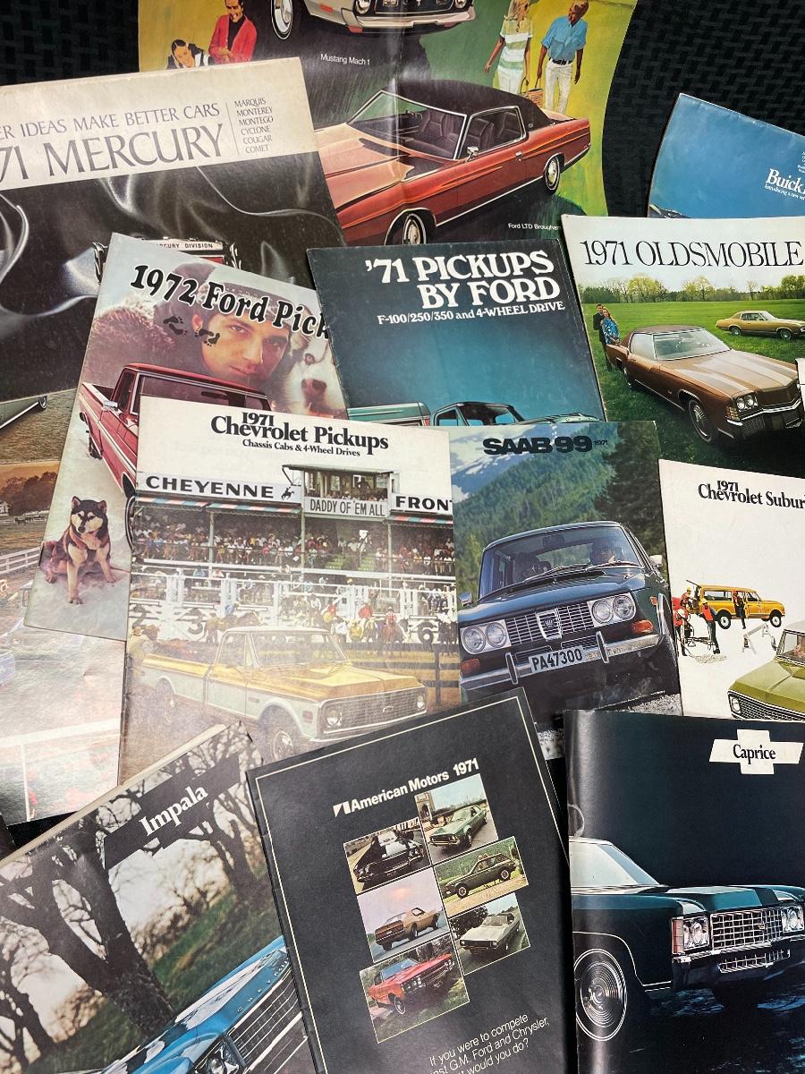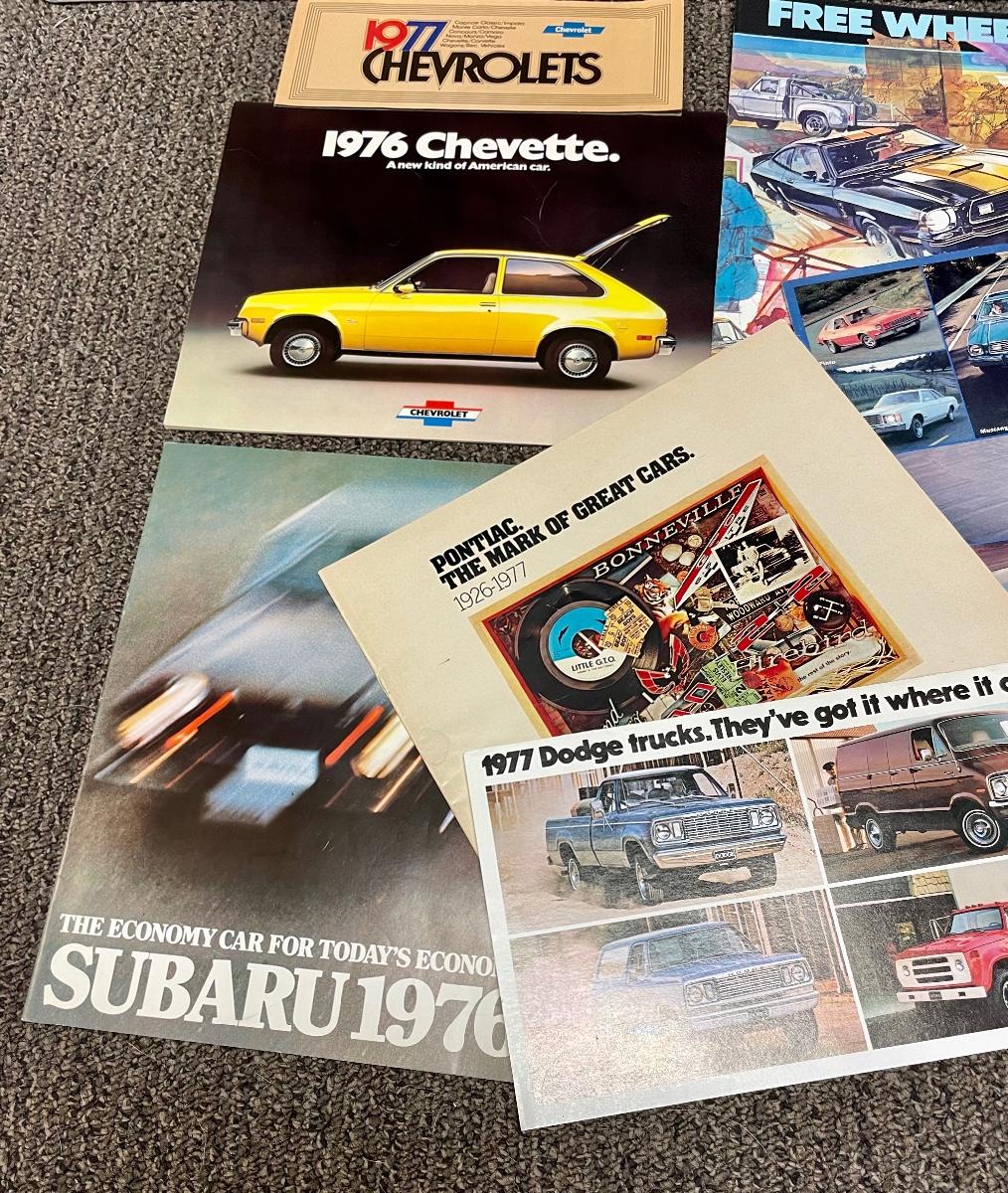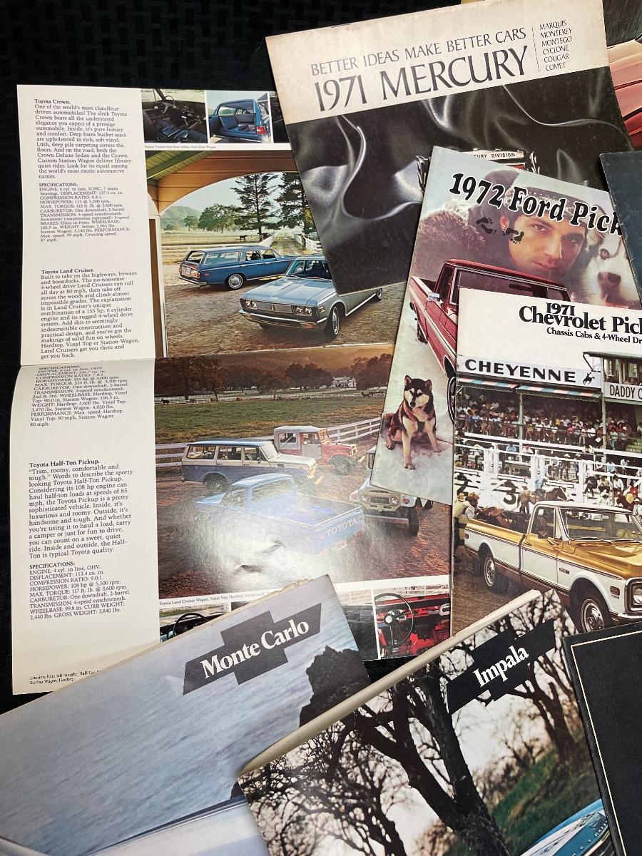 Over 100 new car, truck, RV, trailer and other vehicle brochures, buyers guides, and magazines. Years covered are 1972, 1972, 1973, 2976, 1977, 1986, 1988, 1989, 1998, 1999 and 2003.