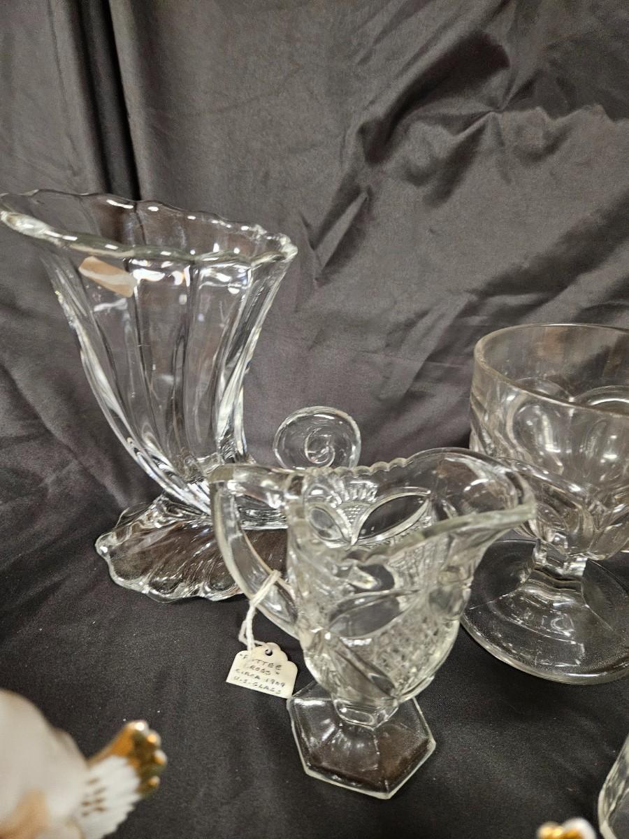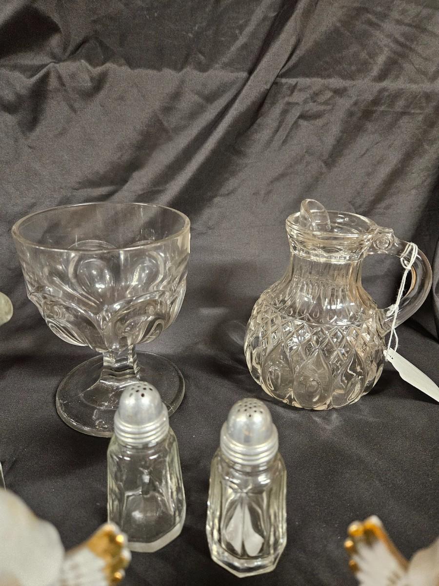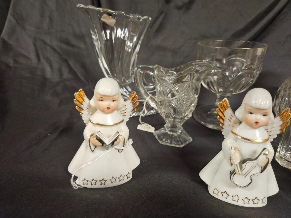 Vintage Lot of Pressed Glass, Goblet, MCM Angels and S&P Shakers
