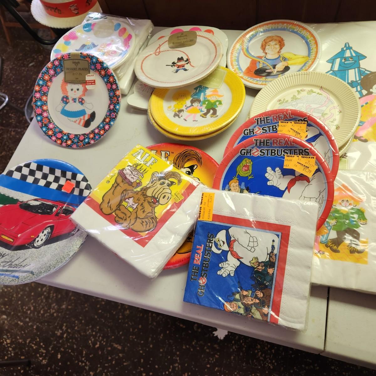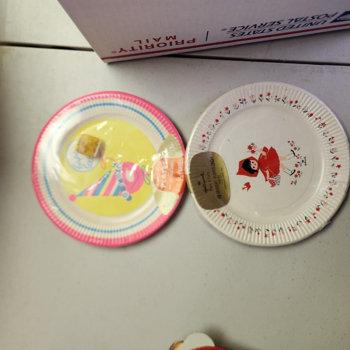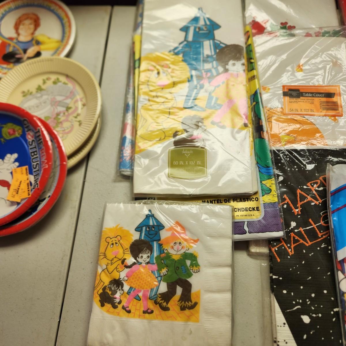 Vintage Lot of Sealed Party Paper plates, napkins, Tablecloths ,