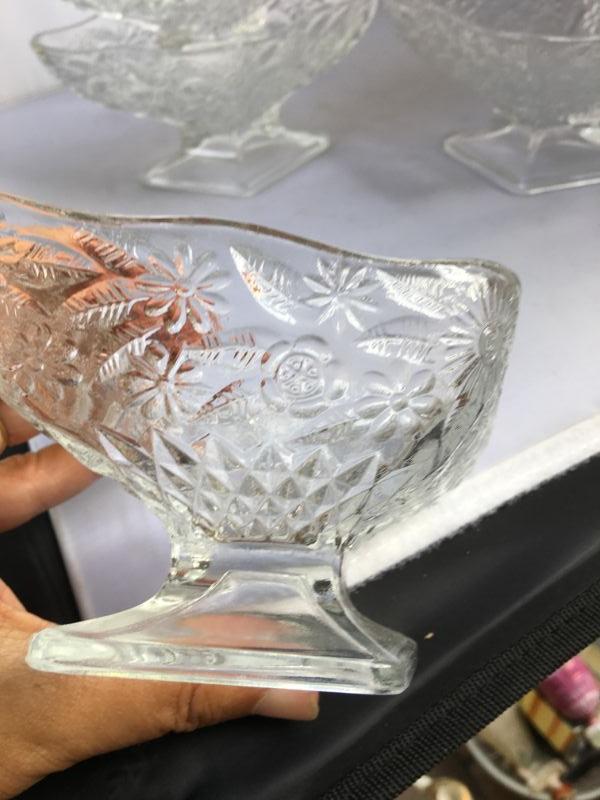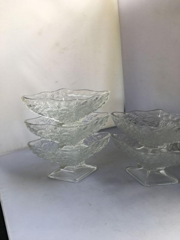 Vintage Lot of SEVEN  Footed Pressed Glass Ice Cream Coupes
