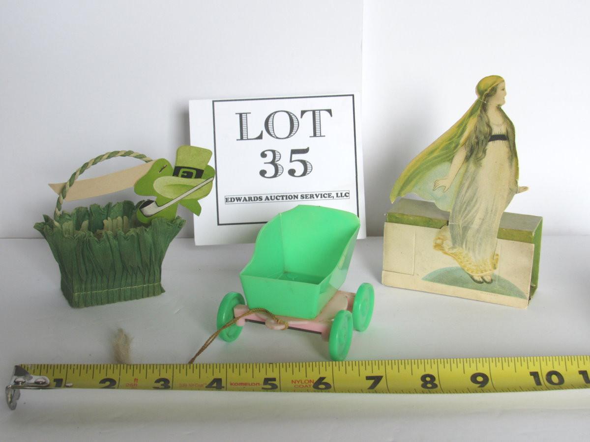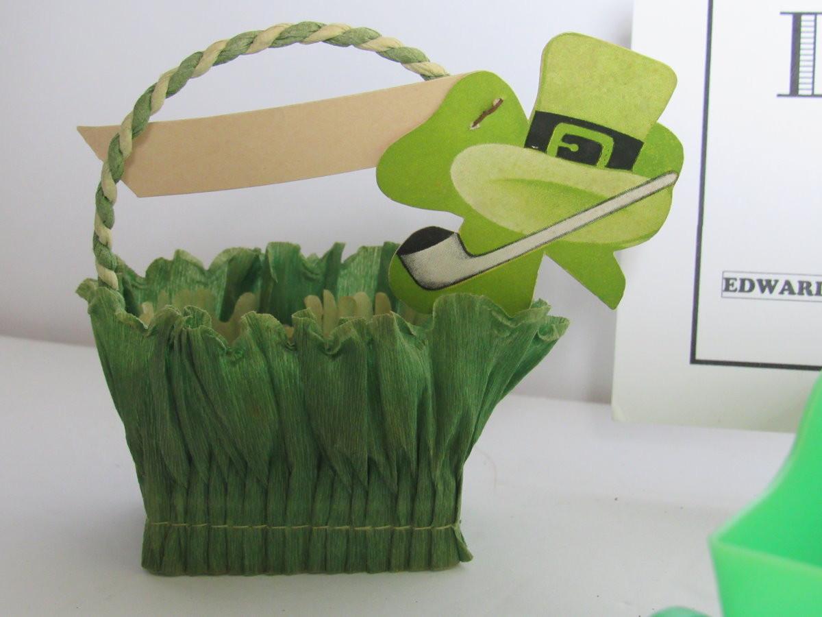 Vintage Lot of St. Patrick's Day Collectibles: Candy Box, Nut Cup, Rosen/Rosbro Cart
