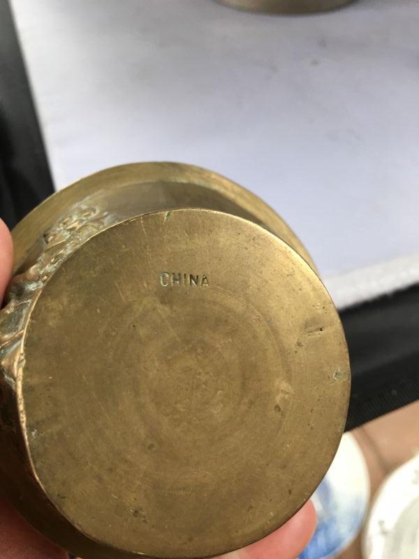 The small bronze stated China which means that was made before 1949 could be turn of the century. The larger creamer has stamps on the bottom.