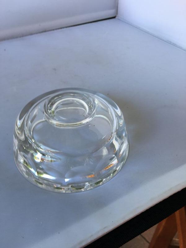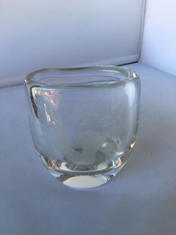 The small bottle is signed Waterford, the glass like etched piece is Orrefors and the candy Dish is signed Korba Costa.