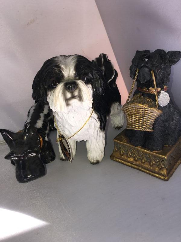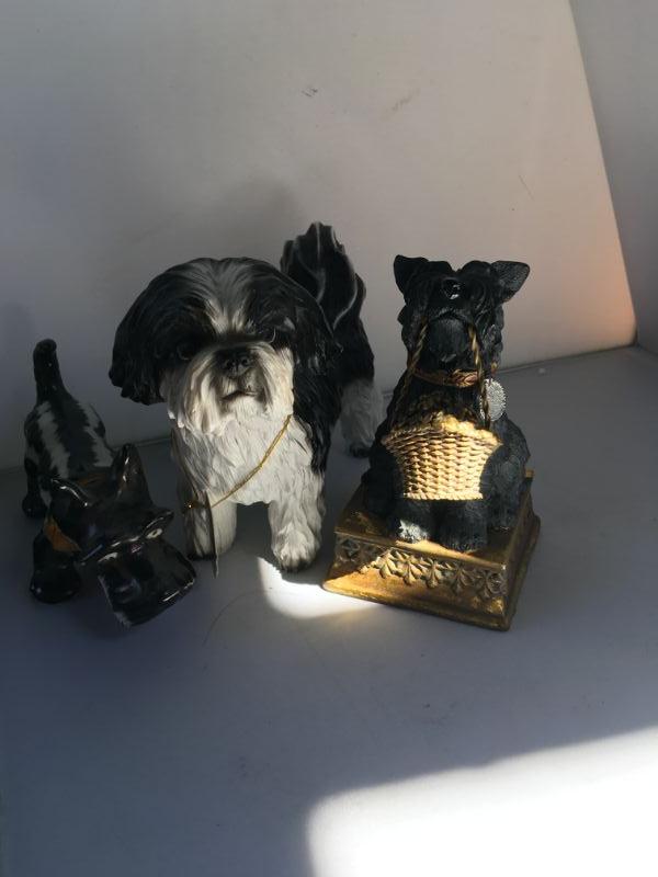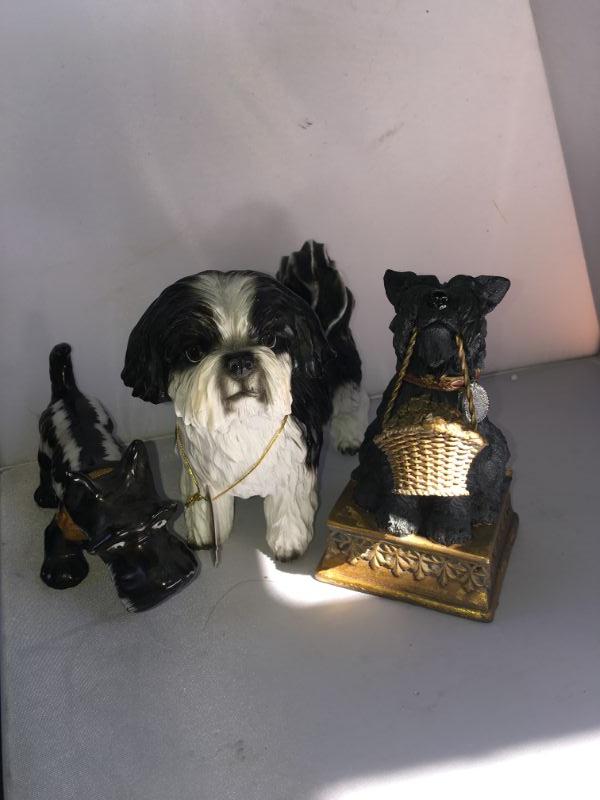All are as new in VG conditions. A Shih Tzu made by Dogwood, a smaller dog made od ceramic and 3rd one holding a basket.