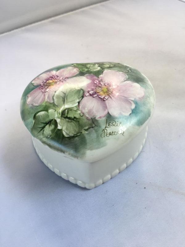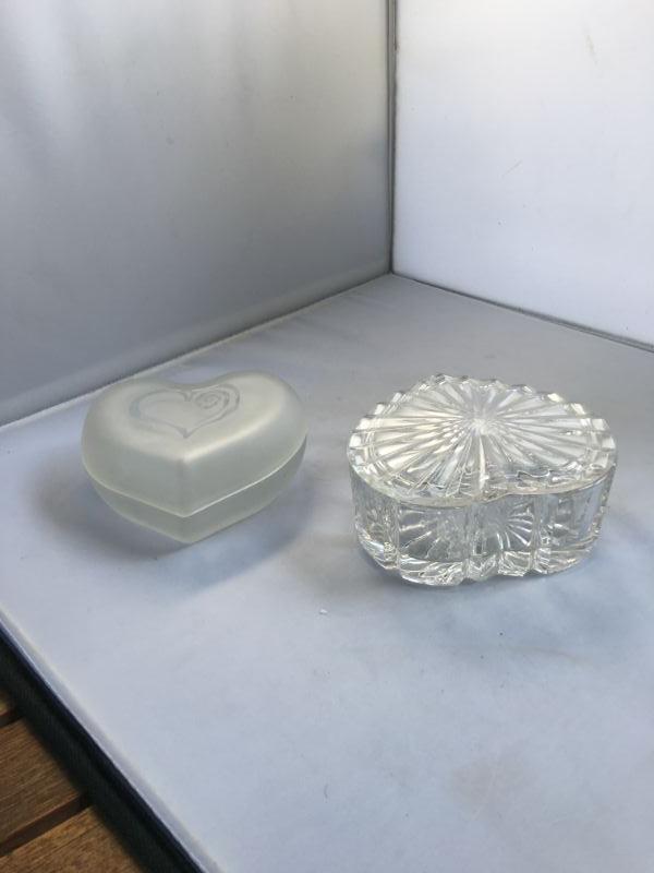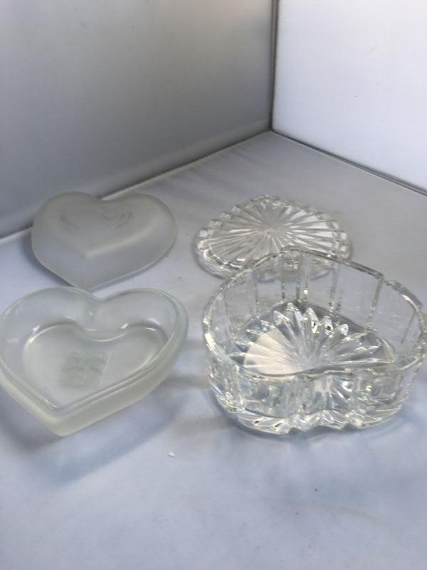 Vintage Lot of Three Heart Shaped Jars Glass, Ceramic and Crystal
