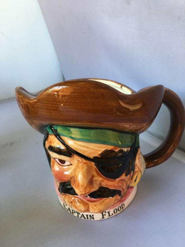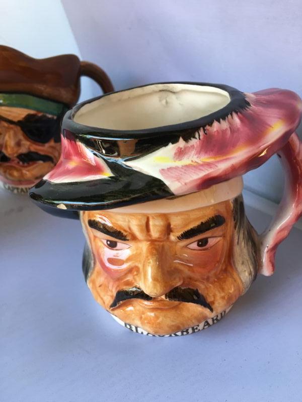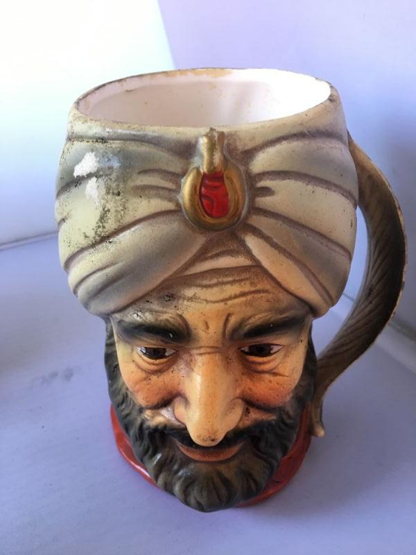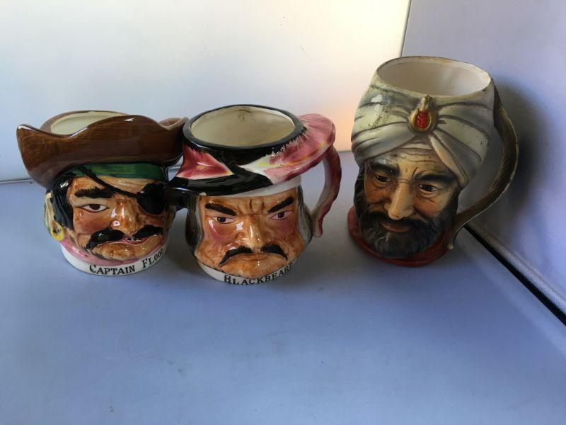 Vintage lot of Three Vintage Toby Jug Mug Hand Painted Japan. Captain Floyd has a chip on the back of the head (see photo) and the the one with a turban has a cheap on forehead.